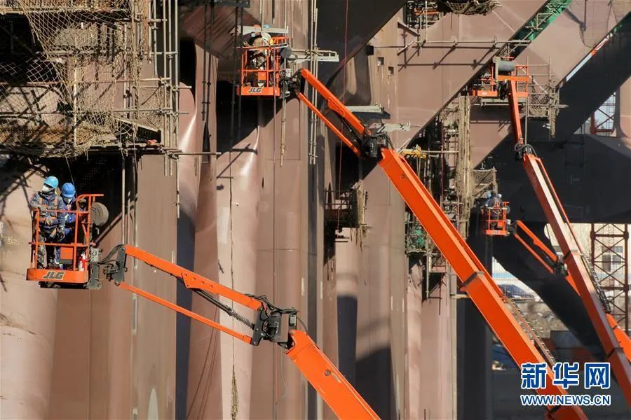 ▲資料圖片:在中集來(lái)福士山東煙臺(tái)建造基地,工人們?cè)诮ㄔ焐钏B(yǎng)殖工船。新華社發(fā)(唐克 攝)