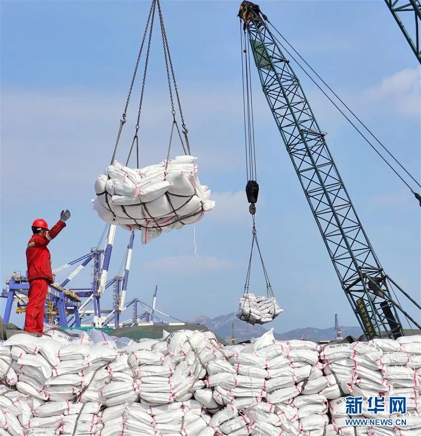 ▲資料圖片:在山東省港口集團(tuán)煙臺(tái)港,工人在裝運(yùn)化肥。新華社發(fā)(唐克 攝)