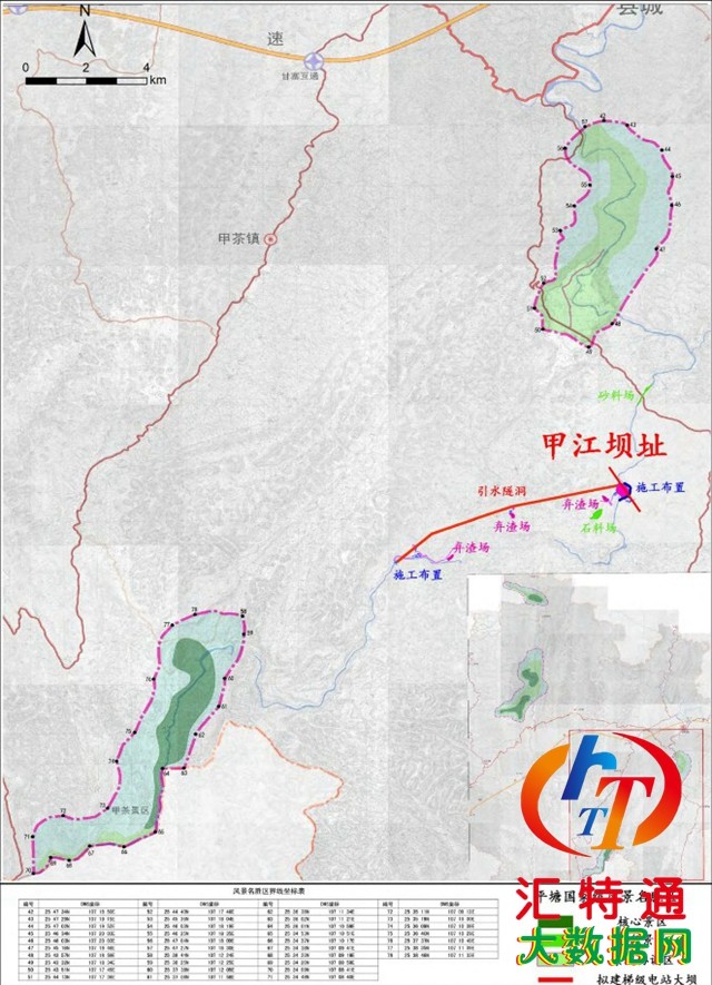 目前,六洞河干流甲茶以下的交末(后改名為新納力)電站已建,甲江以上的擦耳巖梯級正處于施工階段,其余梯級均為規(guī)劃階段。基本情況如下: