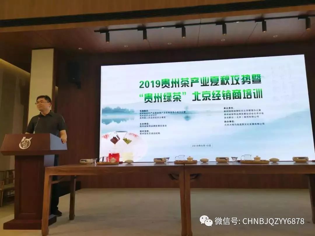 2019年6月10日,貴州茶產(chǎn)業(yè)夏秋攻勢(shì)暨“貴州綠茶”北京經(jīng)銷商培訓(xùn)在馬連道順利開(kāi)班,貴州綠茶品牌發(fā)展促進(jìn)會(huì)北京分會(huì)及部分貴州茶經(jīng)銷商80余人參加培訓(xùn),北京黔枝玉葉茶莊也應(yīng)邀參加了培訓(xùn)。