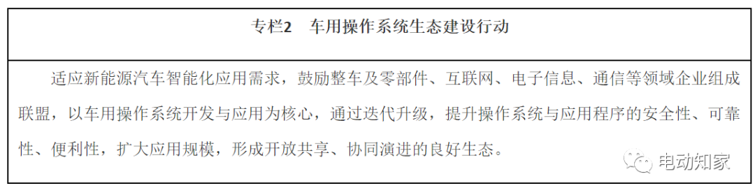 第二節(jié) 加快建設(shè)共性技術(shù)創(chuàng)新平臺建立健全龍頭企業(yè)、國家重點(diǎn)實(shí)驗(yàn)室、國家制造業(yè)創(chuàng)新中心聯(lián)合研發(fā)攻關(guān)機(jī)制,聚焦核心工藝、專用材料、關(guān)鍵零部件、制造裝備等短板弱項,從不同技術(shù)路徑積極探索,提高關(guān)鍵共性技術(shù)供給能力。引導(dǎo)汽車、能源、交通、信息通信等跨領(lǐng)域合作,建立面向未來出行的新能源汽車與智慧能源、智能交通融合創(chuàng)新平臺,聯(lián)合攻關(guān)基礎(chǔ)交叉關(guān)鍵技術(shù),提升新能源汽車及關(guān)聯(lián)產(chǎn)業(yè)融合創(chuàng)新能力。第三節(jié) 提升行業(yè)公共服務(wù)能力依托行業(yè)協(xié)會、創(chuàng)新中心等機(jī)構(gòu)統(tǒng)籌推進(jìn)各類創(chuàng)新服務(wù)平臺共建共享,提高技術(shù)轉(zhuǎn)移、信息服務(wù)、人才培訓(xùn)、項目融資、國際交流等公共服務(wù)支撐能力。應(yīng)用虛擬現(xiàn)實(shí)、大數(shù)據(jù)、人工智能等技術(shù),建立汽車電動化、網(wǎng)聯(lián)化、智能化虛擬仿真和測試驗(yàn)證平臺,提升整車、關(guān)鍵零部件的計量測試、性能評價與檢測認(rèn)證能力。第四章 構(gòu)建新型產(chǎn)業(yè)生態(tài)第一節(jié) 支持生態(tài)主導(dǎo)型企業(yè)發(fā)展鼓勵新能源汽車、能源、交通、信息通信等領(lǐng)域企業(yè)跨界協(xié)同,圍繞多元化生產(chǎn)與多樣化應(yīng)用需求,通過開放合作和利益共享,打造涵蓋解決方案、研發(fā)生產(chǎn)、使用保障、運(yùn)營服務(wù)等產(chǎn)業(yè)鏈關(guān)鍵環(huán)節(jié)的生態(tài)主導(dǎo)型企業(yè)。在產(chǎn)業(yè)基礎(chǔ)好、創(chuàng)新要素集聚的地區(qū),發(fā)揮龍頭企業(yè)帶動作用,培育若干上下游協(xié)同創(chuàng)新、大中小企業(yè)融通發(fā)展、具有國際影響力和競爭力的新能源汽車產(chǎn)業(yè)集群,提升產(chǎn)業(yè)鏈現(xiàn)代化水平。第二節(jié) 促進(jìn)關(guān)鍵系統(tǒng)創(chuàng)新應(yīng)用加快車用操作系統(tǒng)開發(fā)應(yīng)用。以整車企業(yè)需求為牽引,發(fā)揮龍頭企業(yè)、國家制造業(yè)創(chuàng)新中心等創(chuàng)新平臺作用,堅持軟硬協(xié)同攻關(guān),集中開發(fā)車用操作系統(tǒng)。圍繞車用操作系統(tǒng),構(gòu)建整車、關(guān)鍵零部件、基礎(chǔ)數(shù)據(jù)與軟件等領(lǐng)域市場主體深度合作的開發(fā)與應(yīng)用生態(tài)。通過產(chǎn)品快速迭代,擴(kuò)大用戶規(guī)模,加快車用操作系統(tǒng)產(chǎn)業(yè)化應(yīng)用。