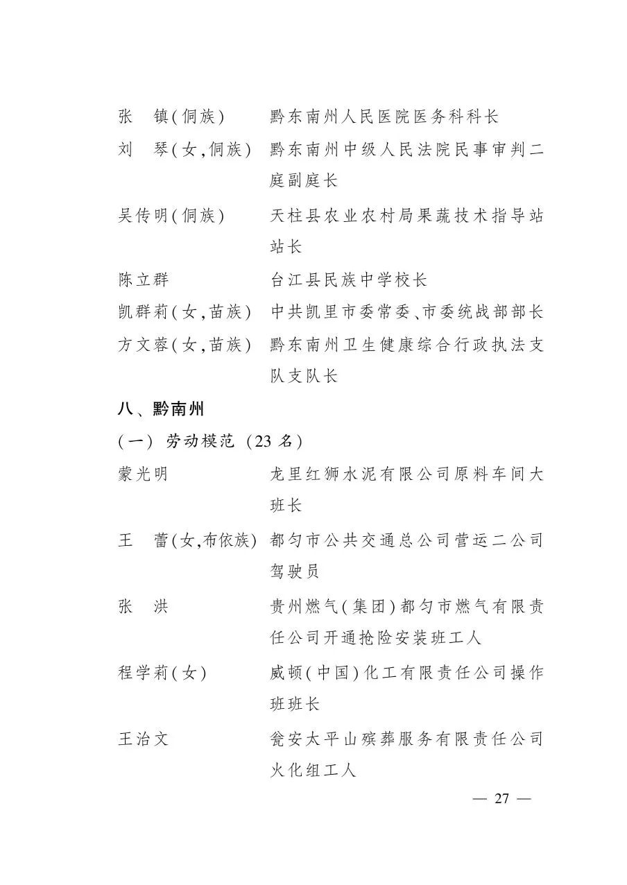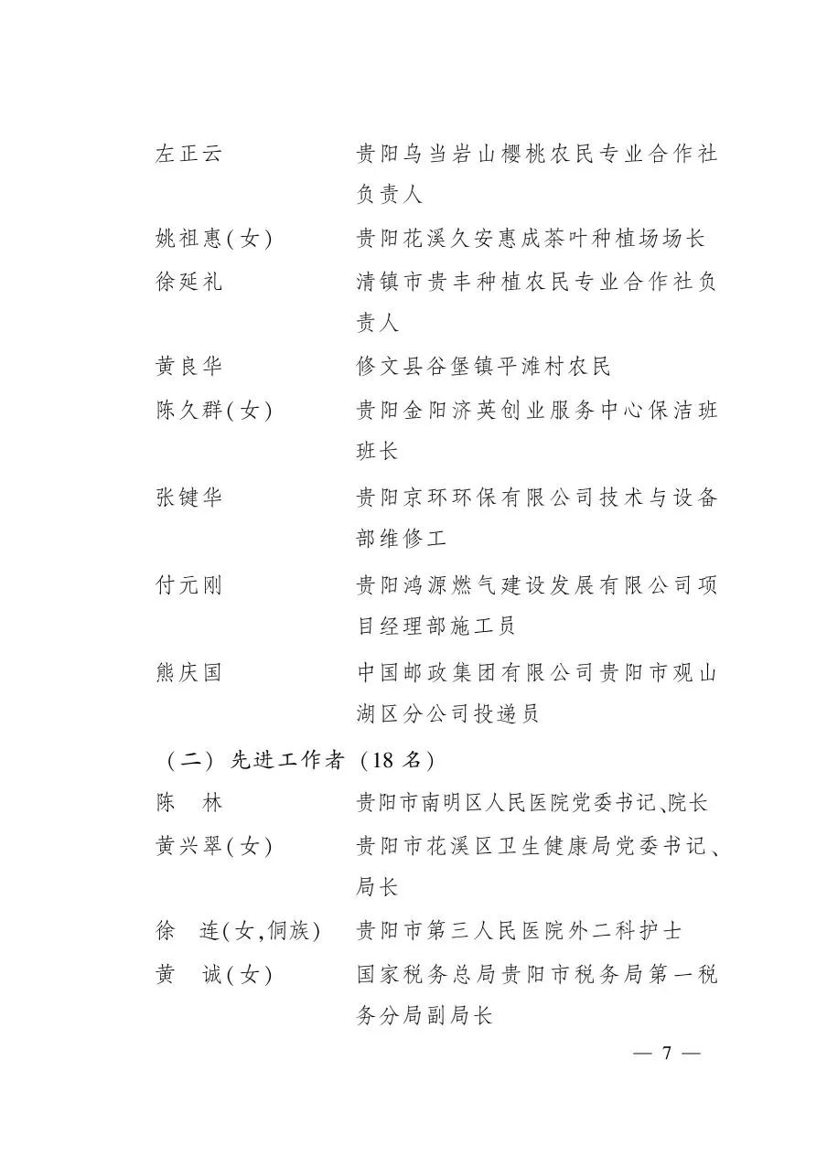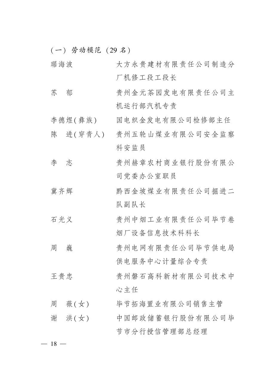 關于表彰2020年貴州省勞動模范和