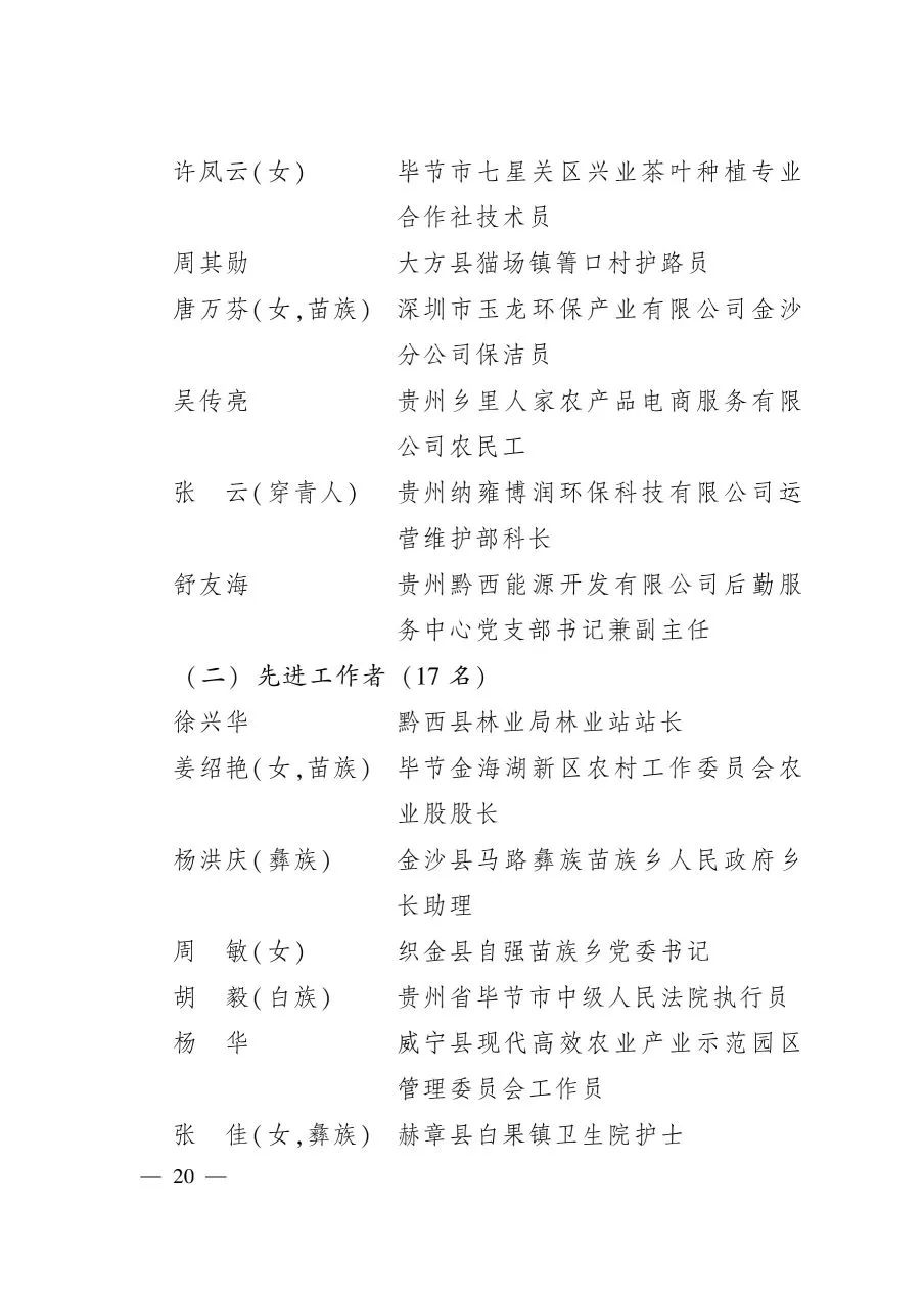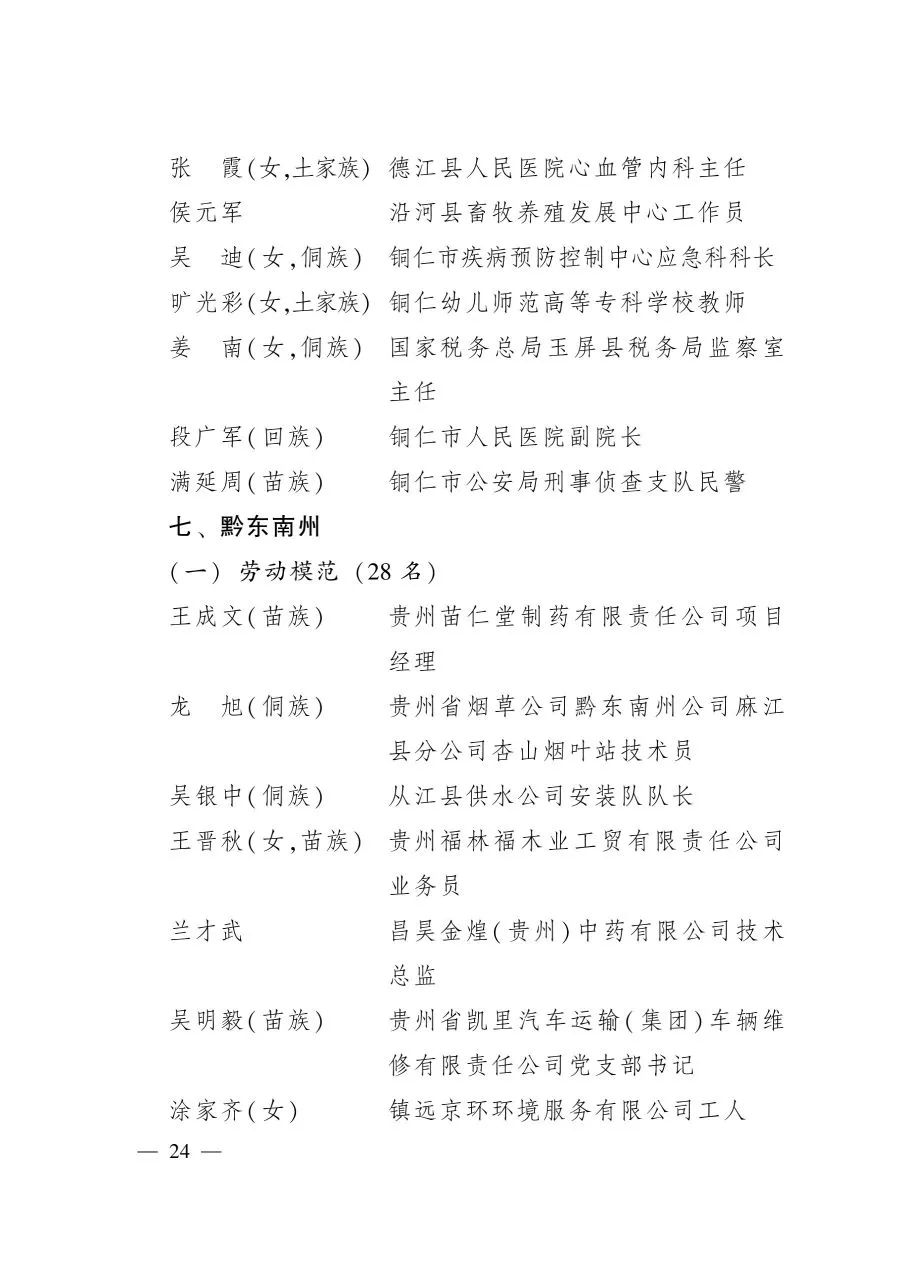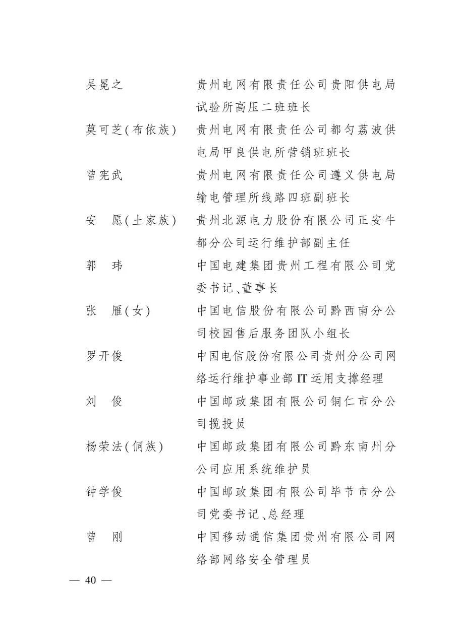 關于表彰2020年貴州省勞動模范和