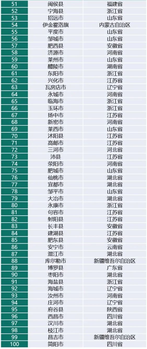 從進步位次數(shù)量來看,濟源市進步最多,醴陵市和高郵市緊隨其后;其中,濟源市上升35位,由93位上升至58位;醴陵市次之,上升31位,由91位上升至60位;高郵市上升27位,由98位上升至71位。
