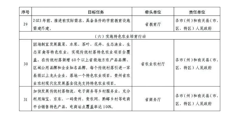 (六)實(shí)施特色農(nóng)業(yè)培育行動(dòng)。因地制宜發(fā)展蔬菜、水果、茶葉、花卉、生態(tài)漁業(yè)、生態(tài)家禽等特色農(nóng)業(yè),實(shí)現(xiàn)傳統(tǒng)村落特色農(nóng)業(yè)項(xiàng)目全覆蓋,在傳統(tǒng)村落新增60個(gè)以上省級(jí)地方農(nóng)產(chǎn)品品牌、區(qū)域公用品牌和企業(yè)知名品牌。每個(gè)傳統(tǒng)村落引進(jìn)一家縣級(jí)以上龍頭企業(yè)、落地一個(gè)特色農(nóng)業(yè)項(xiàng)目,貴州省農(nóng)業(yè)農(nóng)村現(xiàn)代化發(fā)展基金優(yōu)先支持特色農(nóng)業(yè)項(xiàng)目。加快發(fā)展傳統(tǒng)村落物流、電子商務(wù)等鄉(xiāng)村服務(wù)業(yè),充分利用淘寶、京東、一碼貴州、貴農(nóng)網(wǎng)、黔郵鄉(xiāng)村等電商平臺(tái)銷售特色產(chǎn)品,電商站點(diǎn)覆蓋率達(dá)100%。將傳統(tǒng)村落特色農(nóng)業(yè)項(xiàng)目納入“一村一企·百企幫百村”興村行動(dòng),采取“龍頭企業(yè)+村集體+農(nóng)戶”模式,發(fā)展壯大村集體經(jīng)濟(jì)組織,所有傳統(tǒng)村落農(nóng)民專業(yè)合作社均達(dá)到省級(jí)示范社標(biāo)準(zhǔn),力爭(zhēng)100個(gè)以上農(nóng)民專業(yè)合作社達(dá)到國(guó)家級(jí)示范社標(biāo)準(zhǔn)。