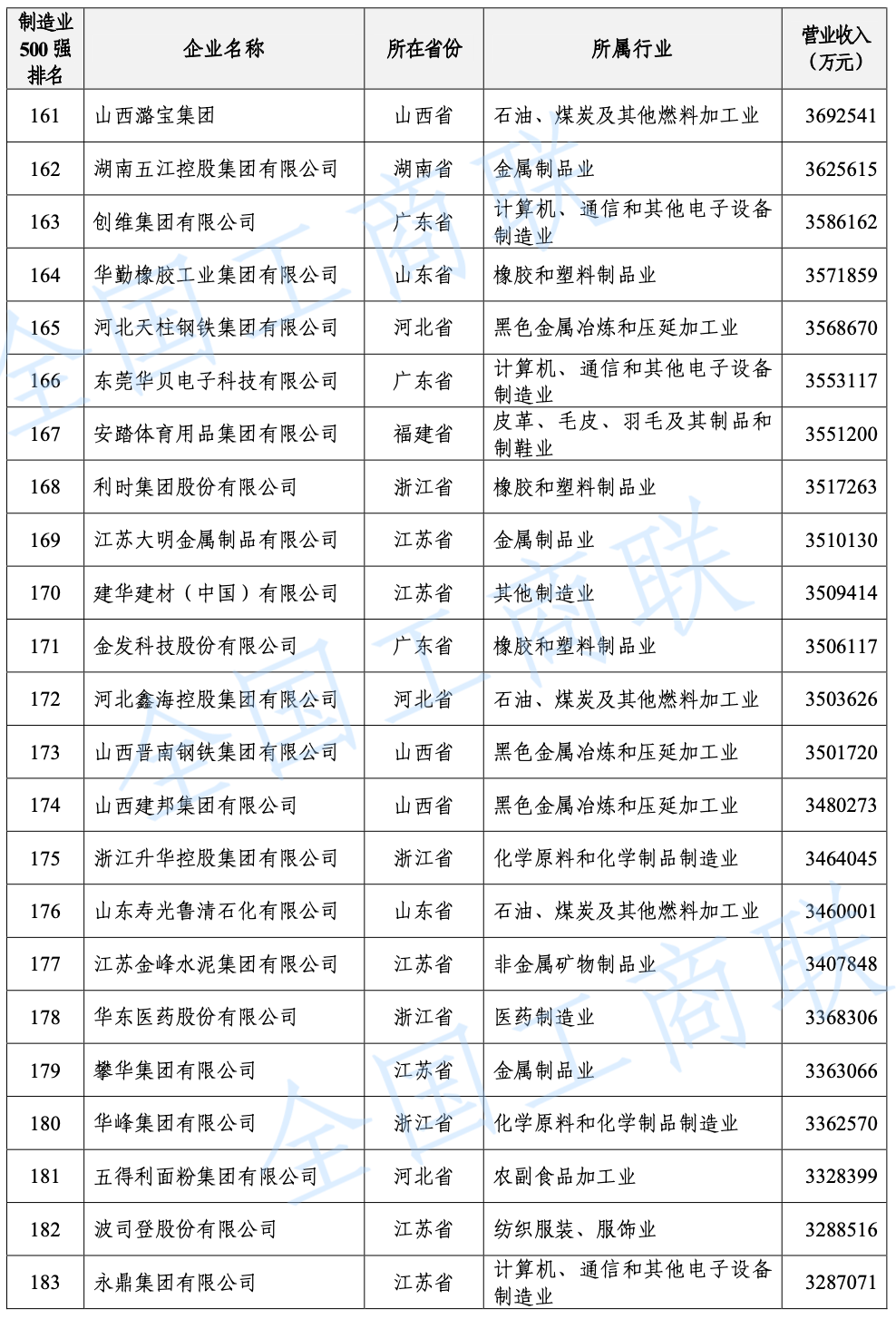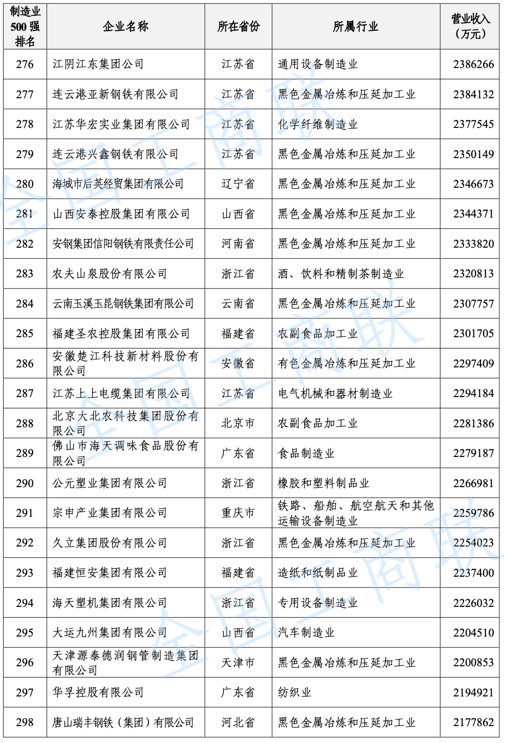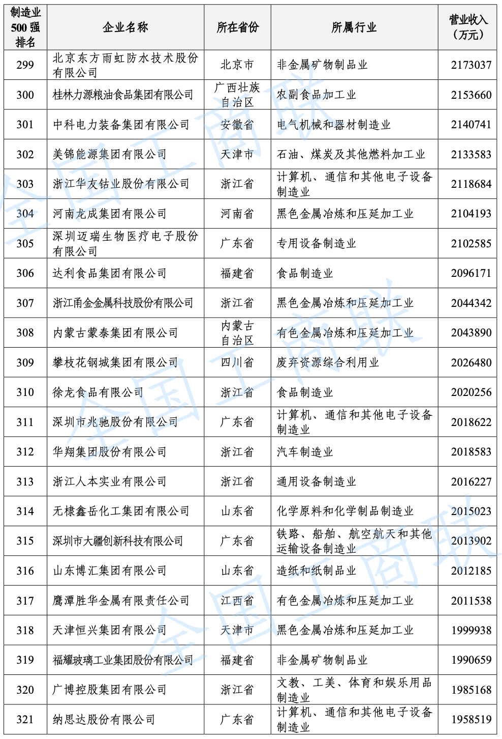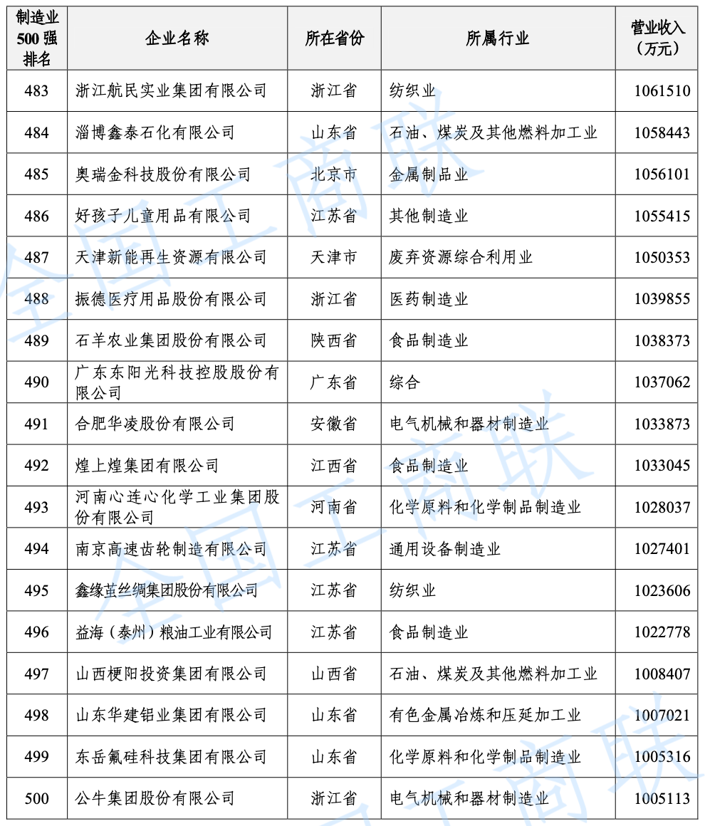 2021 年中國制造業(yè)民營企業(yè) 500 強(qiáng)榜單: