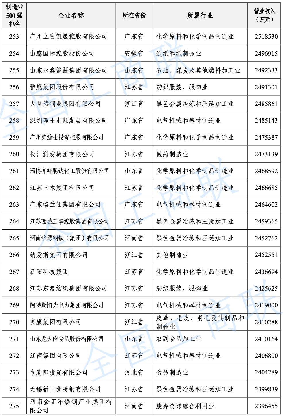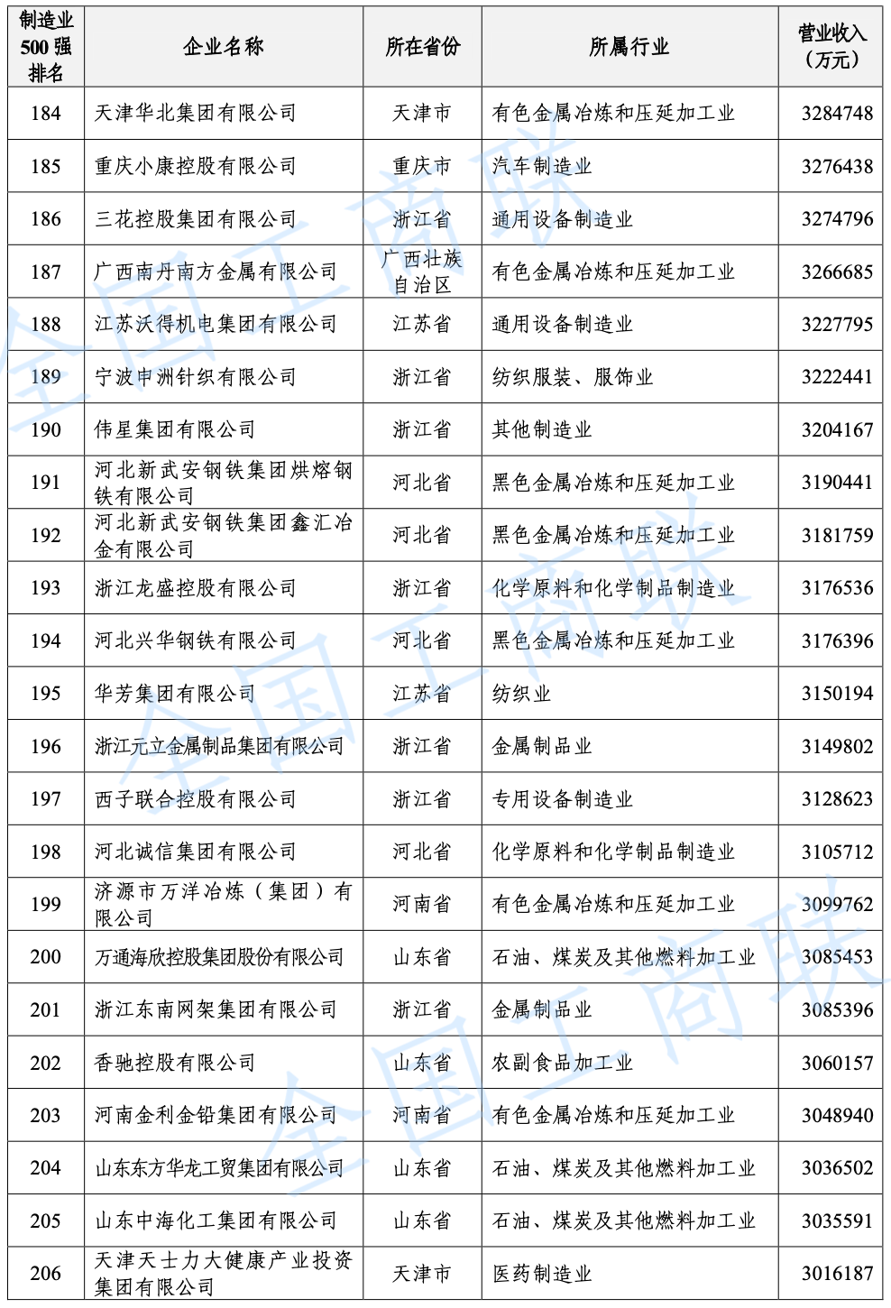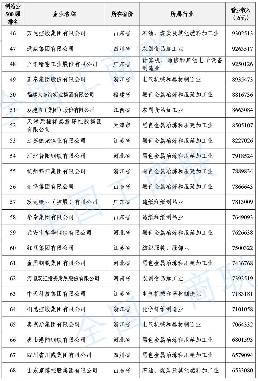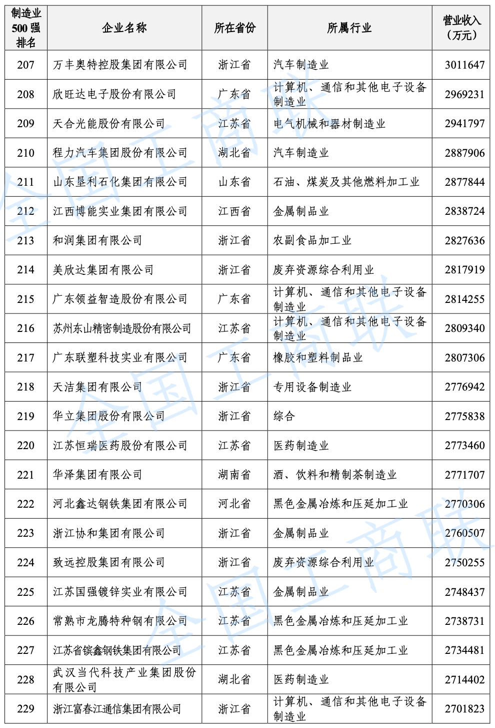 2021 年中國制造業(yè)民營企業(yè) 500 強(qiáng)榜單: