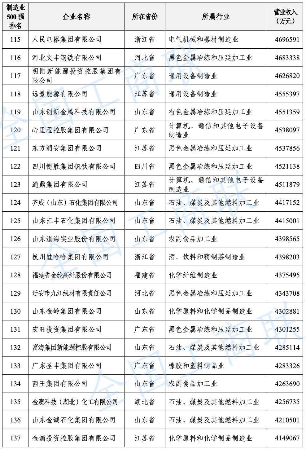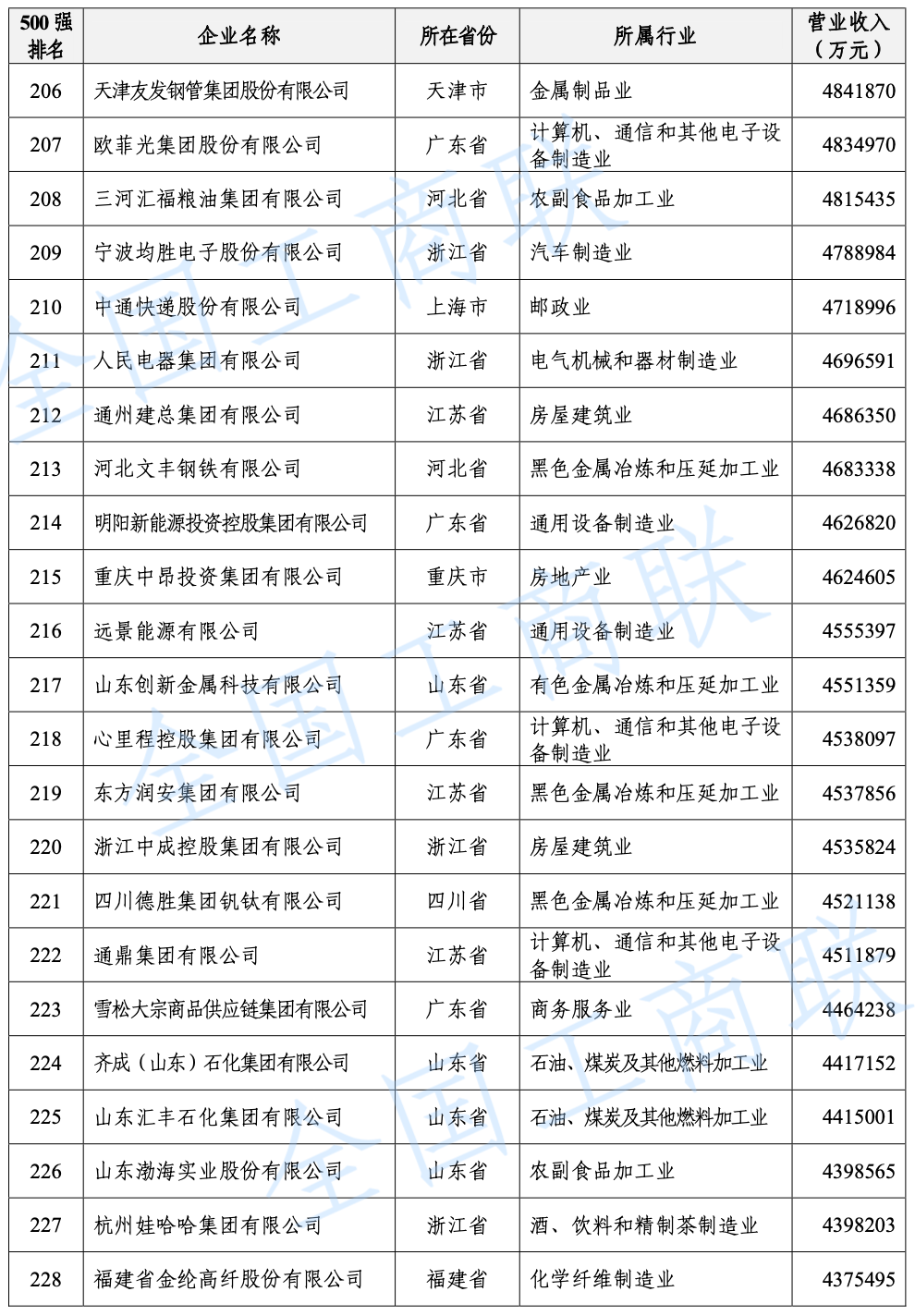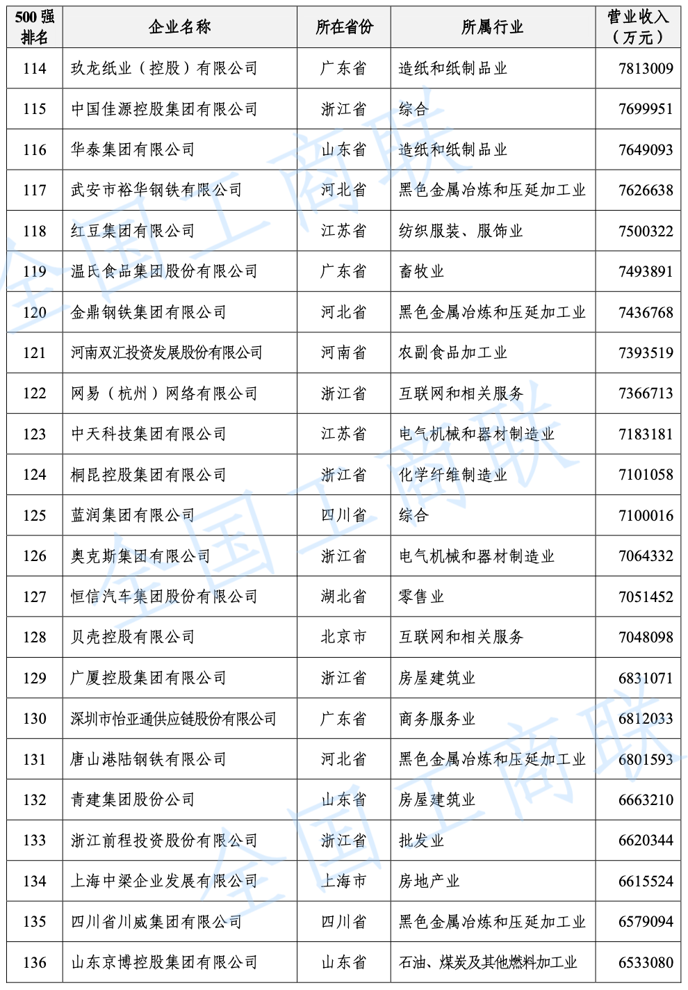 另外需要說明的是,今年的民營企業(yè)500強(qiáng)中有57家為新入圍企業(yè),其中有6家企業(yè)采用其披露的公開數(shù)據(jù)。退出榜單的企業(yè)主要由于未參加調(diào)研、營業(yè)收入未達(dá)到入圍門檻、不符合入榜條件等。