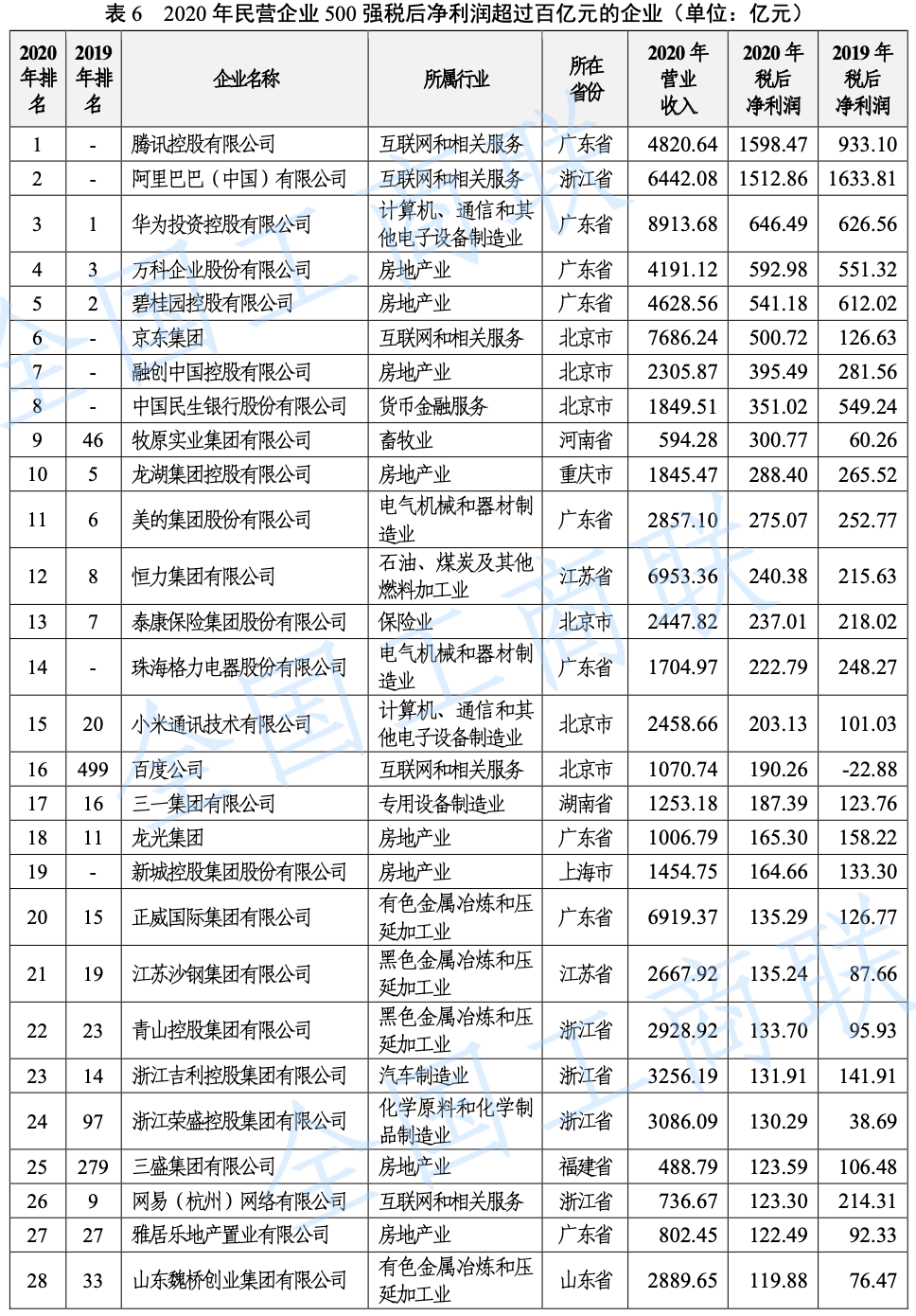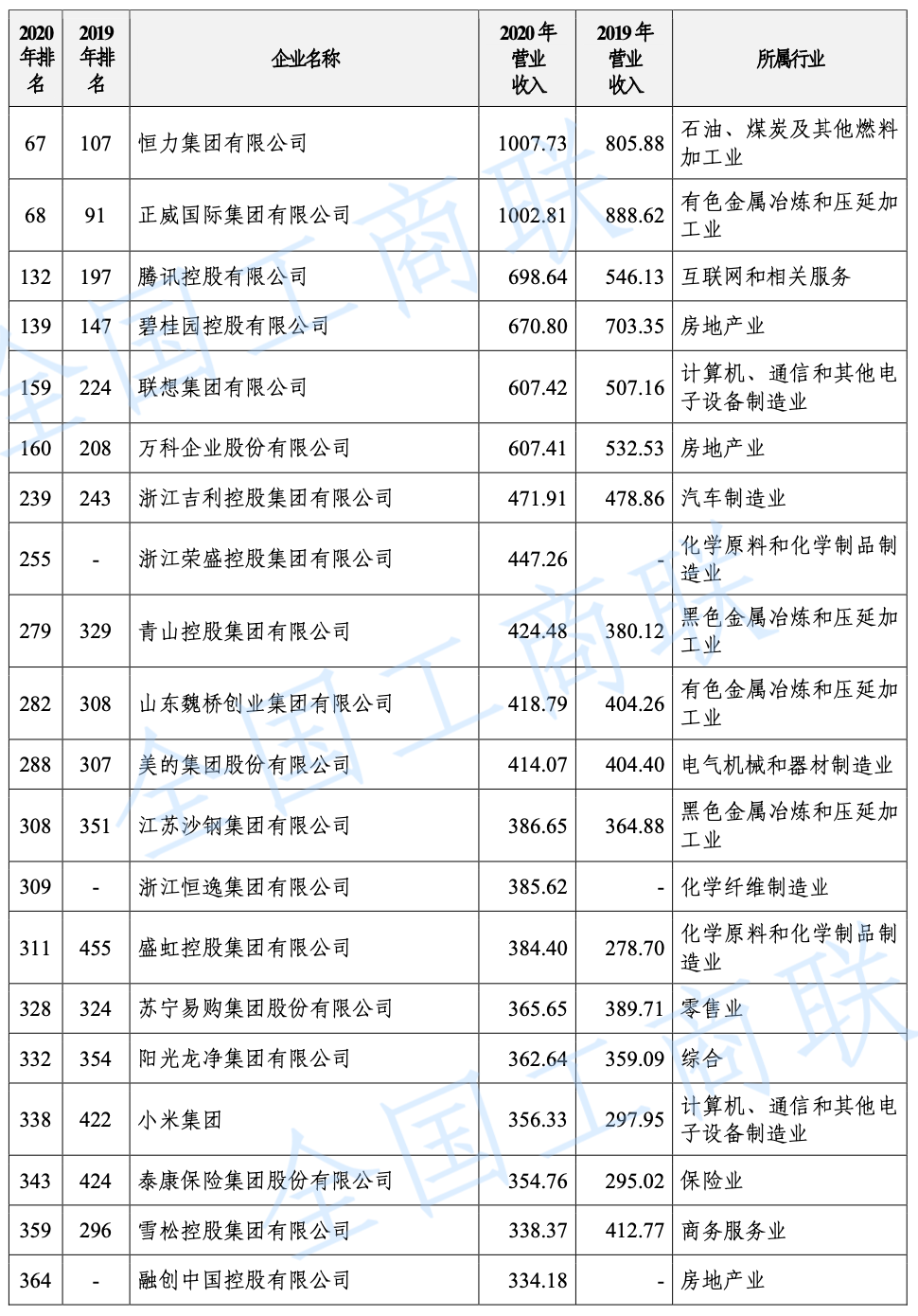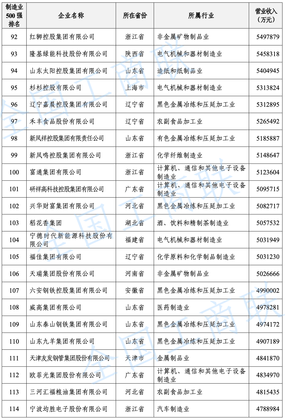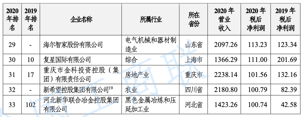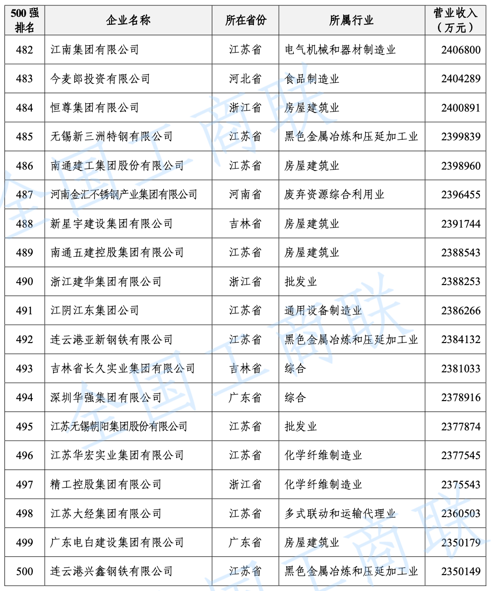 2021 年中國民營企業(yè) 500 強(qiáng)榜單: