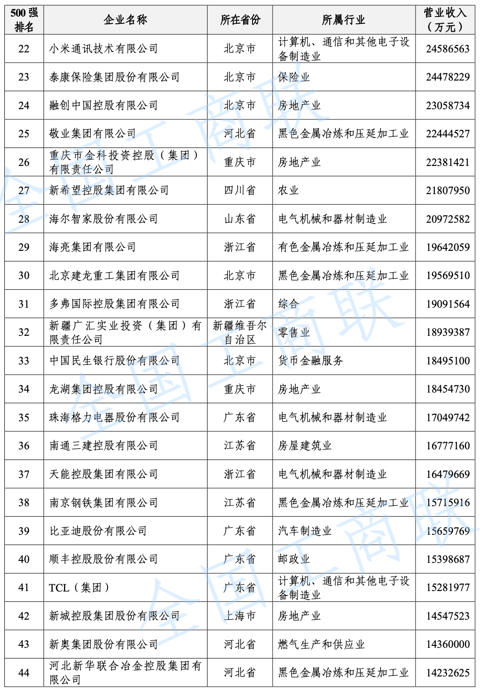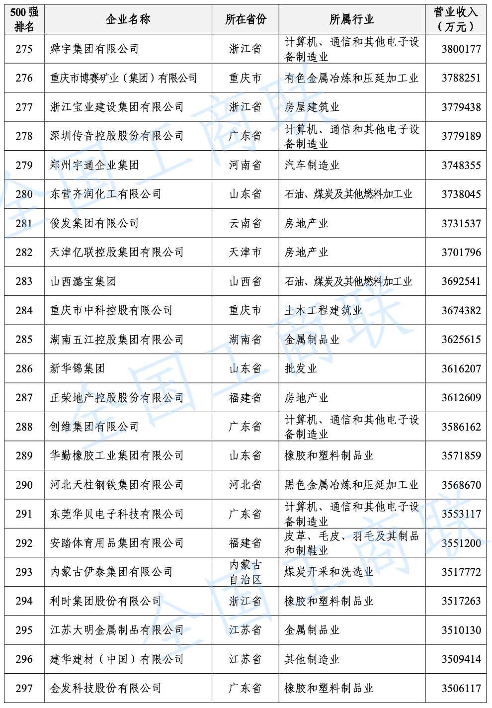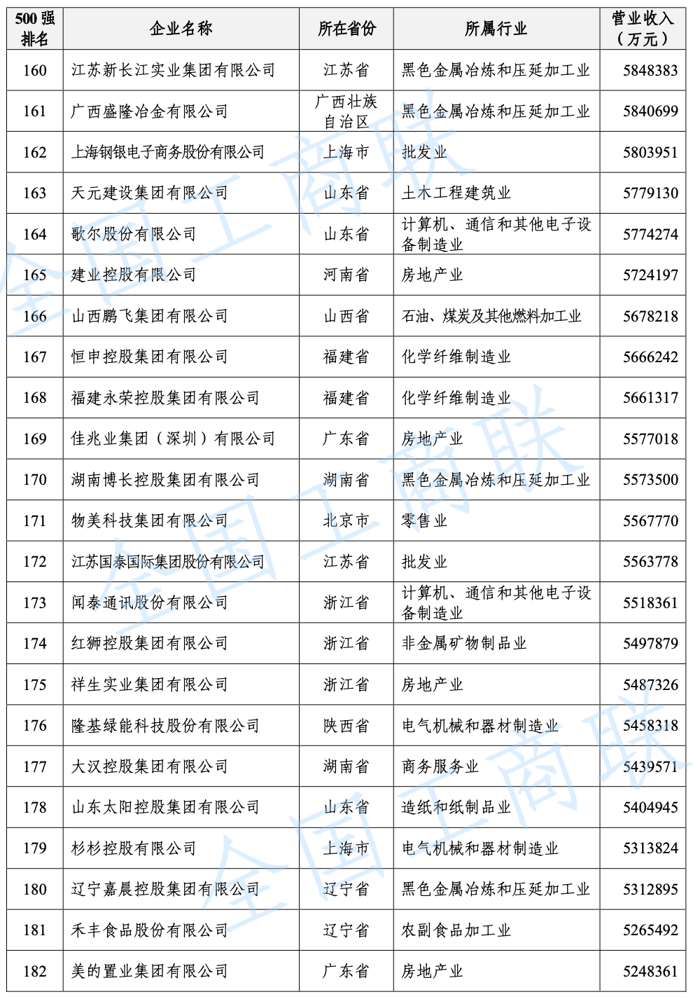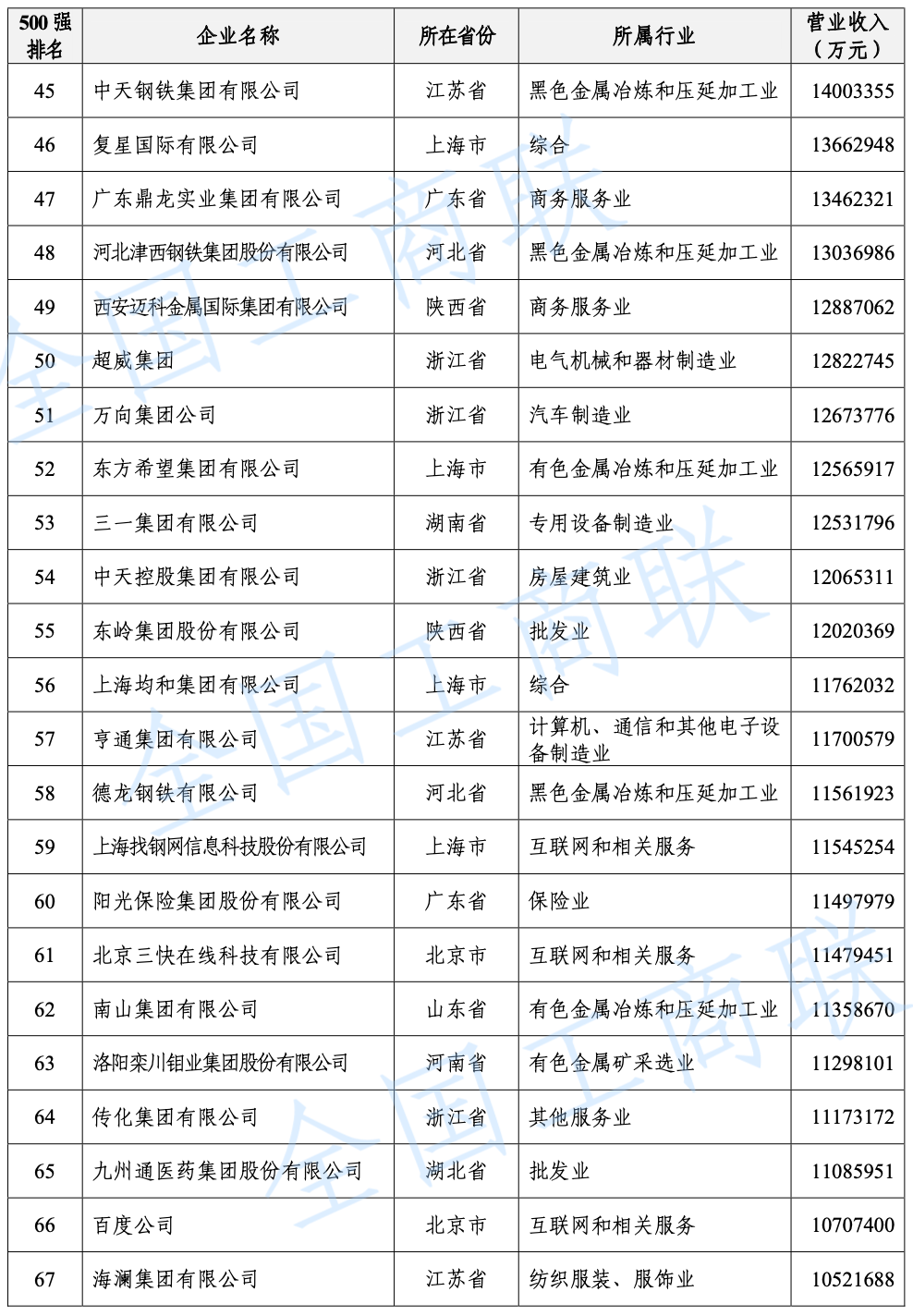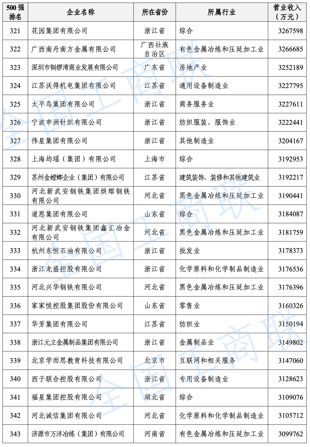 2021 年中國民營企業(yè) 500 強(qiáng)榜單: