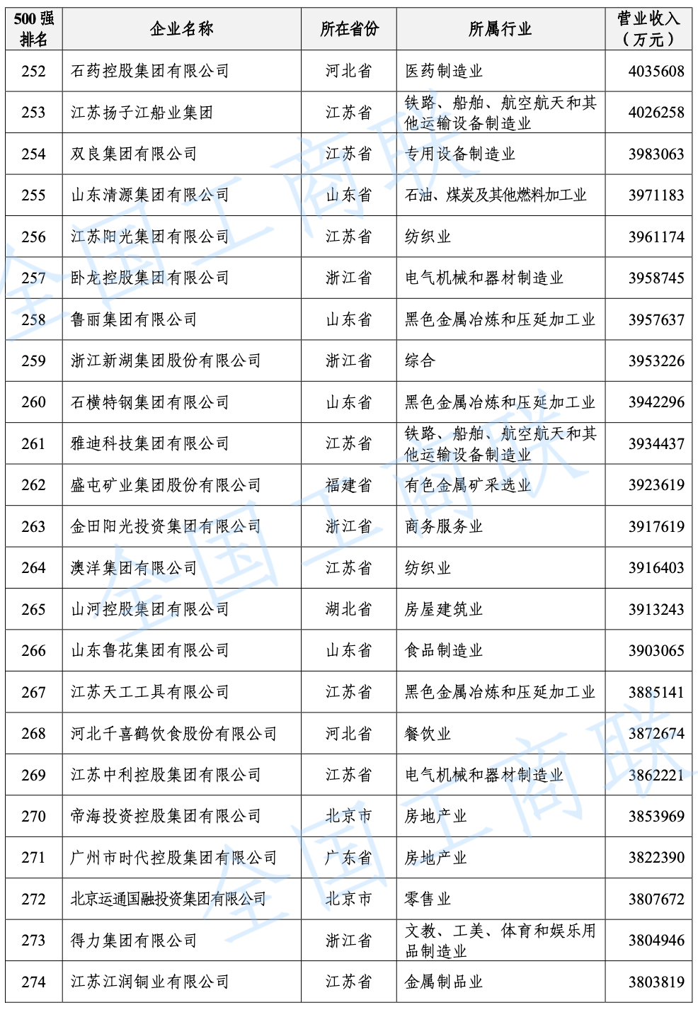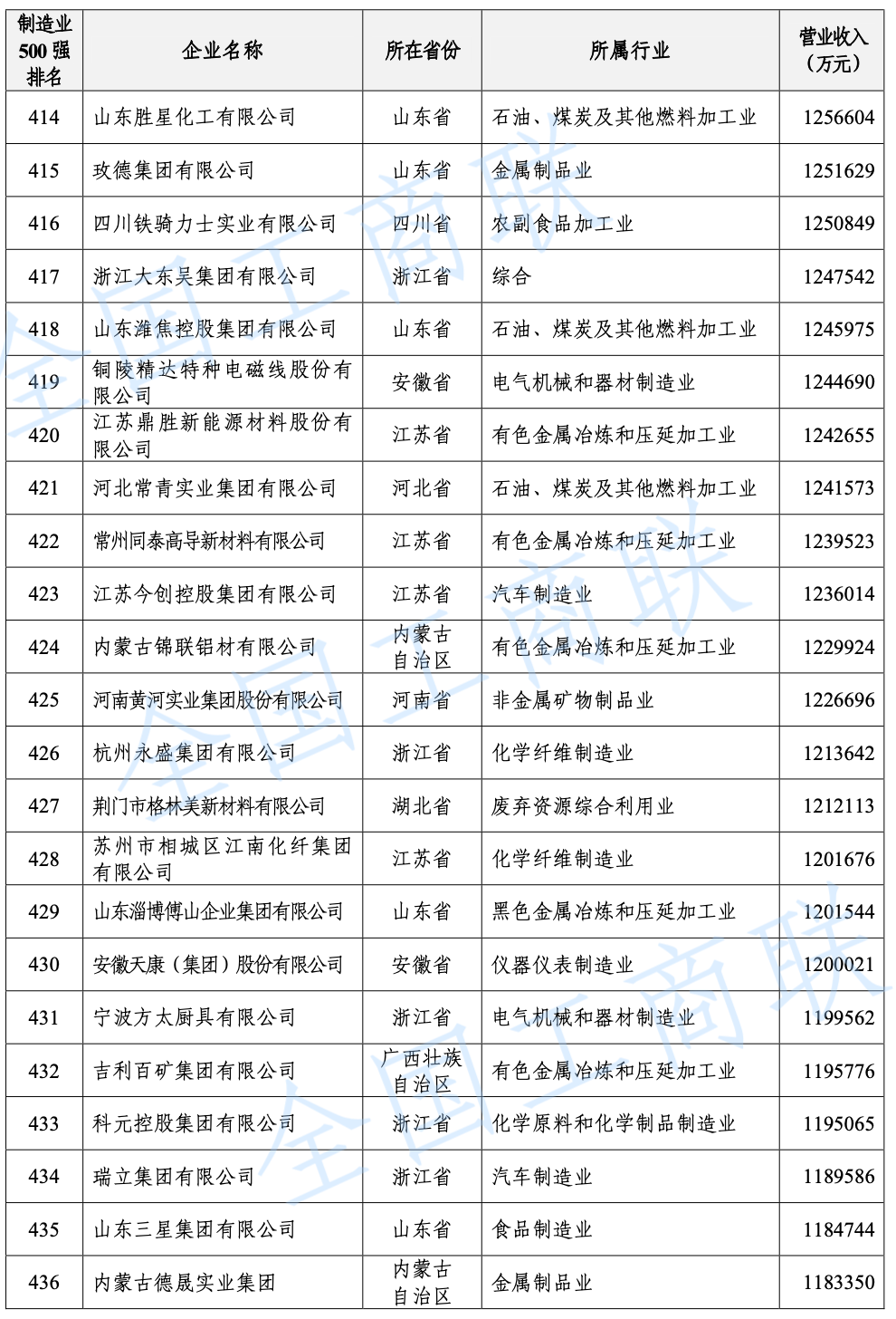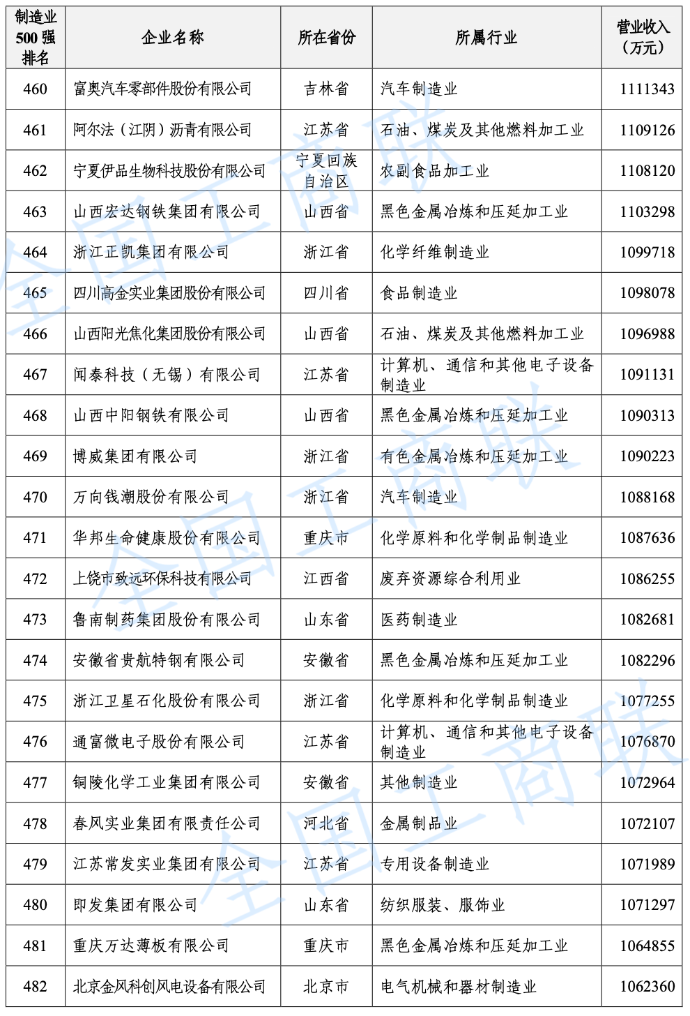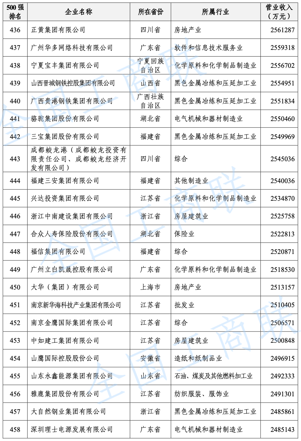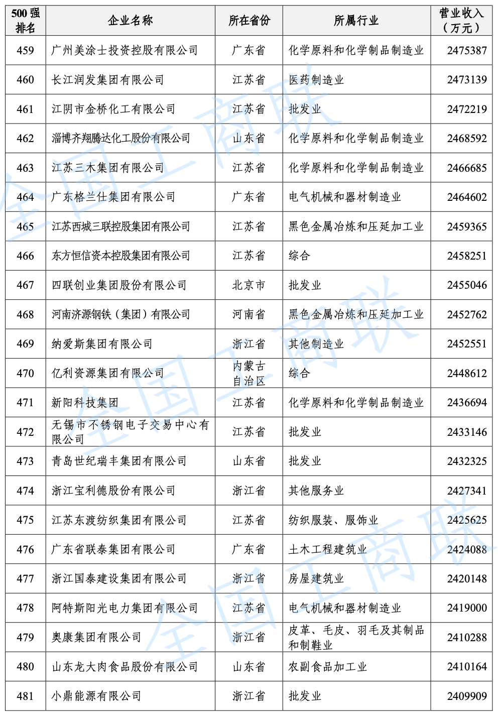 2021 年中國民營企業(yè) 500 強(qiáng)榜單: