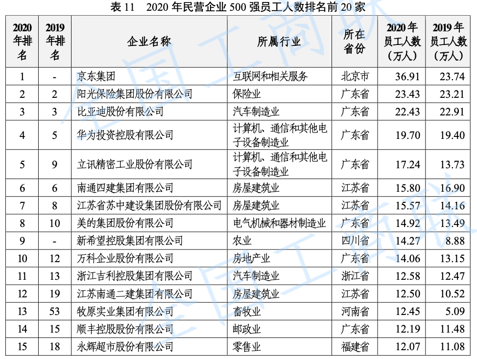 其中,京東集團(tuán)員工人數(shù)最多,達(dá)36.91萬人。