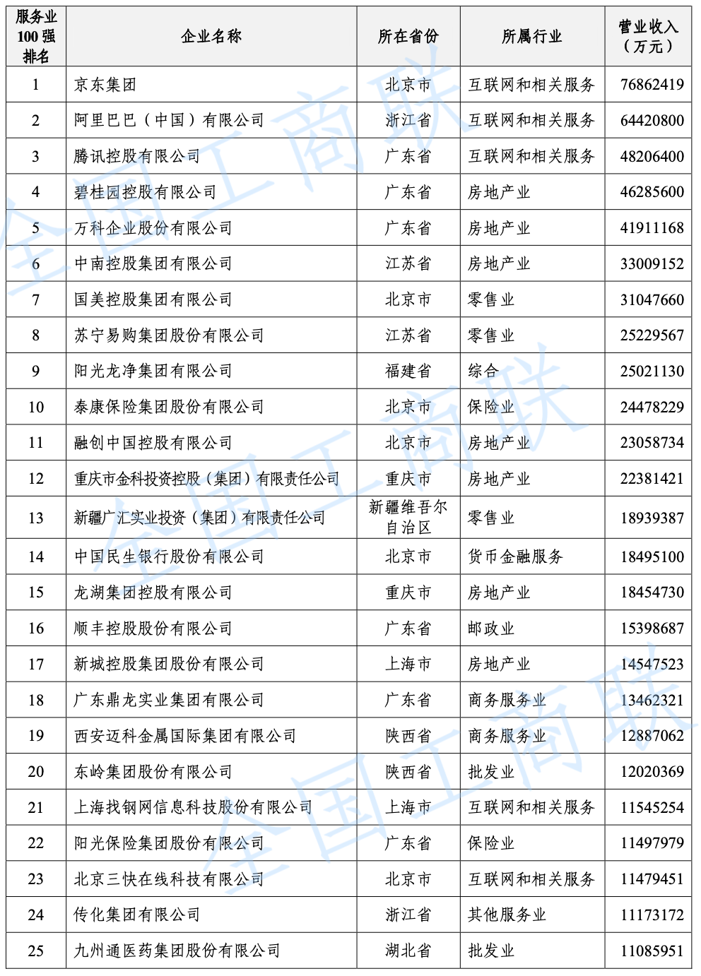 京東集團(tuán)位居服務(wù)業(yè)民營企業(yè)100強(qiáng)首位。資產(chǎn)總額超過千億規(guī)模的企業(yè)有98家,比上年增加18家。