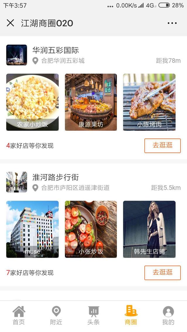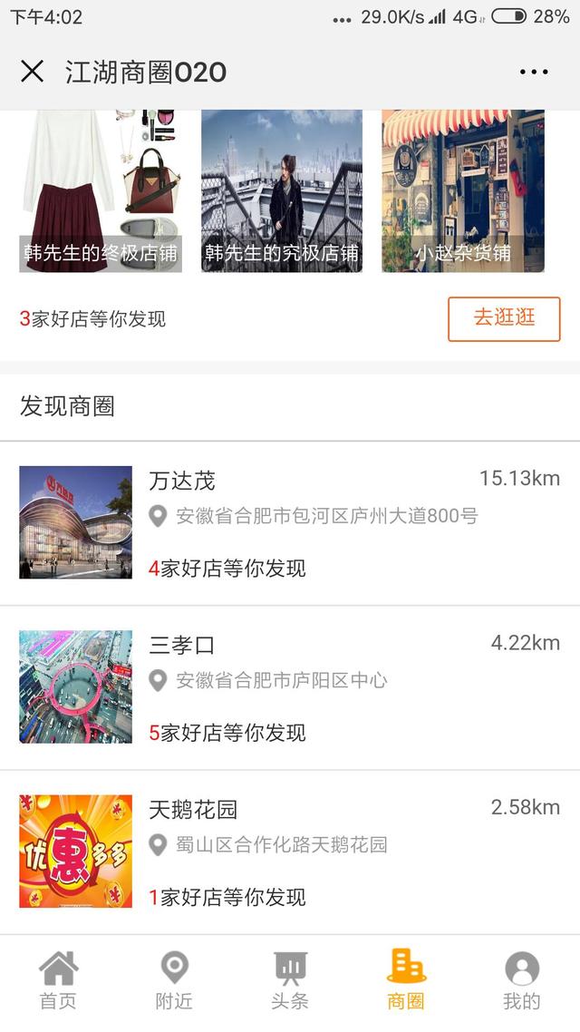 用戶進(jìn)入商圈,屏幕拉到最下方就可發(fā)現(xiàn)附近的商圈,可以為不同的商圈進(jìn)行宣傳以及推廣。