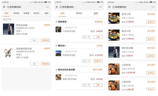 不只是訂單模塊的優(yōu)化,訂單信息的展示和訂單狀態(tài)詳情也進(jìn)行了更新,下圖是具體團(tuán)購訂單、外賣訂單、到店買單頁面情況。
