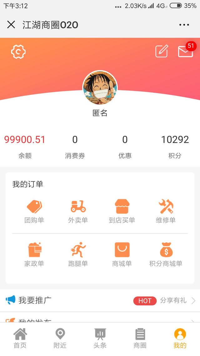 江湖智慧生活商圈O2O系統(tǒng) (又稱江湖商圈)是一款專業(yè)的O2O本地商圈線上線下源碼系統(tǒng),包含社區(qū)物業(yè)、特惠團(tuán)購、同城跑腿、外賣送餐