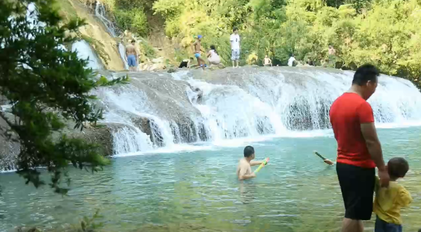 貴陽游客曾懷江: 朋友的推薦,他們說這邊比較好玩我們就過來了,我感覺這邊水源還是比較干凈的,都是從瀑布上面流下來的水,給人一種很清新的感覺,我們?cè)谶@邊也可以親近大自然,感受一下大自然帶給我們的自然風(fēng)光,這些都是在貴陽感受不到的。