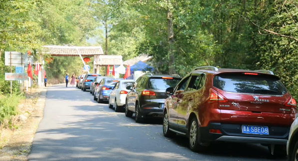在甲茶景區(qū)大門口,來來往往的車輛相連在一起,已經(jīng)一眼望不到頭尾,雖然游客很多,但工作人員依然有條不紊的在給每一位游客測(cè)量體溫、登記出入境信息。