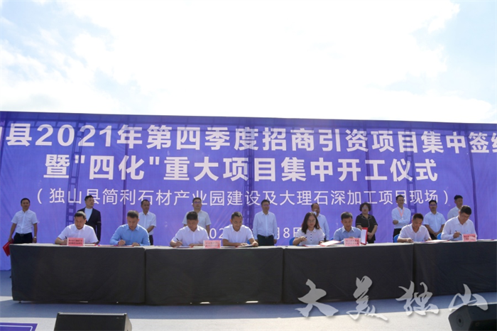10月8日,獨(dú)山舉行第四季度招商引資項(xiàng)目集中簽約和“四化”重大項(xiàng)目集中開工儀式,縣委書記李景寬宣布獨(dú)山縣2021年第四季度“四化”重大項(xiàng)目集中開工;縣委副書記、縣長王裕民致辭。
