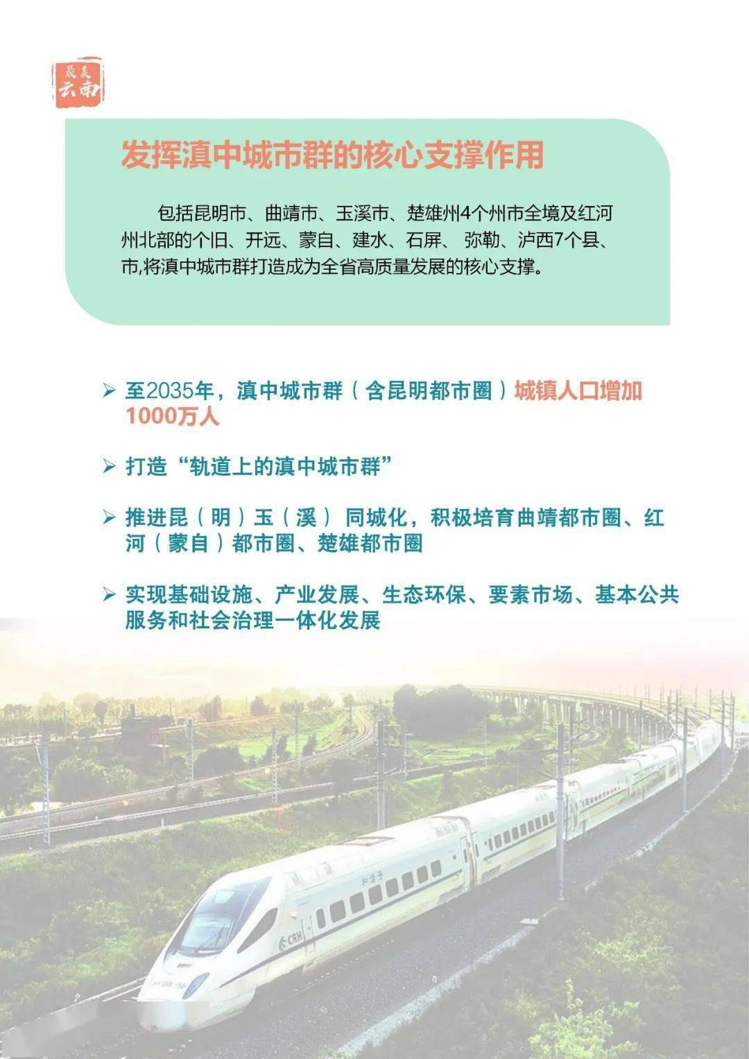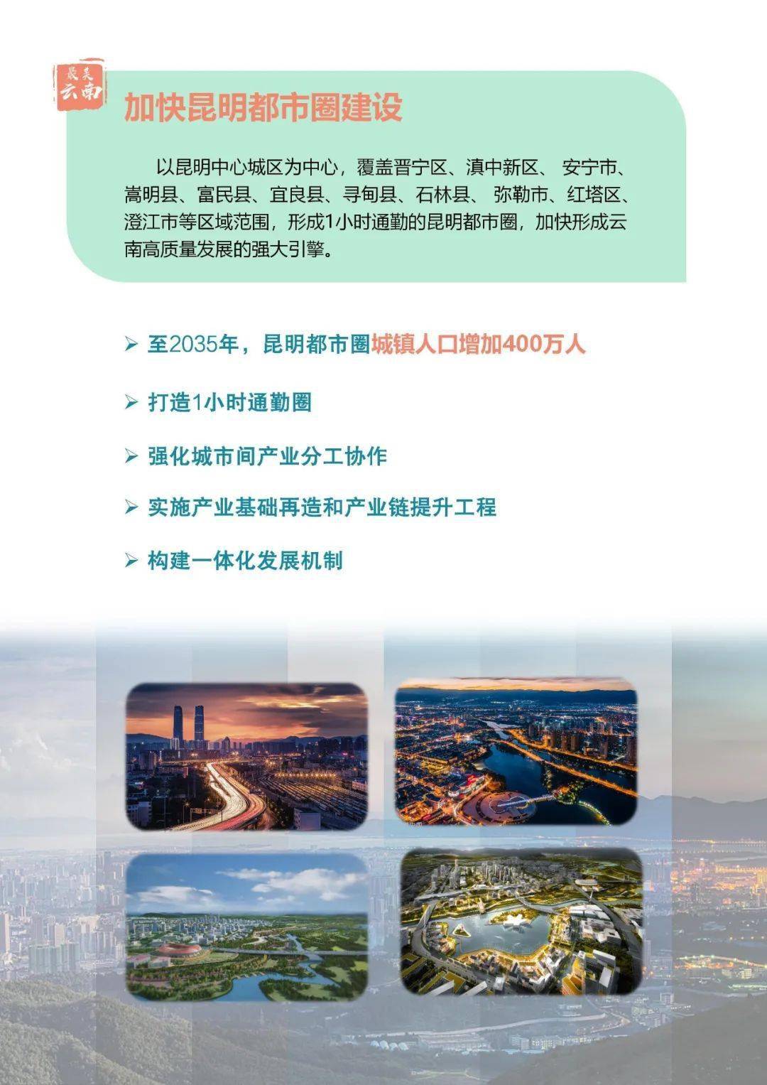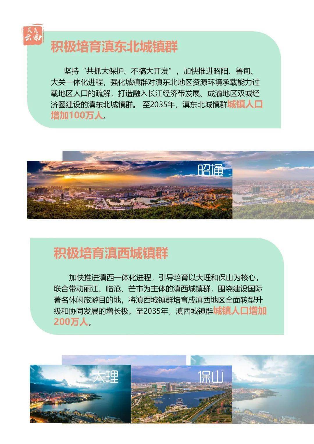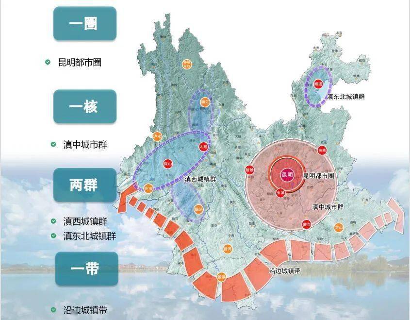 在城鎮(zhèn)化戰(zhàn)略布局上,根據(jù)云南省國土空間總體規(guī)劃,規(guī)劃到2035年,云南省常住人口將達到5500萬人,預(yù)計城鎮(zhèn)化率達70%左右;通過做強滇中城市群、打造昆明都市圈,發(fā)揮其核心支撐作用,規(guī)劃未來15年滇中城市群人口增加1000萬人。與此同時,云南將積極培育滇西和滇東北兩個城鎮(zhèn)群,建設(shè)沿邊開放城鎮(zhèn)帶。