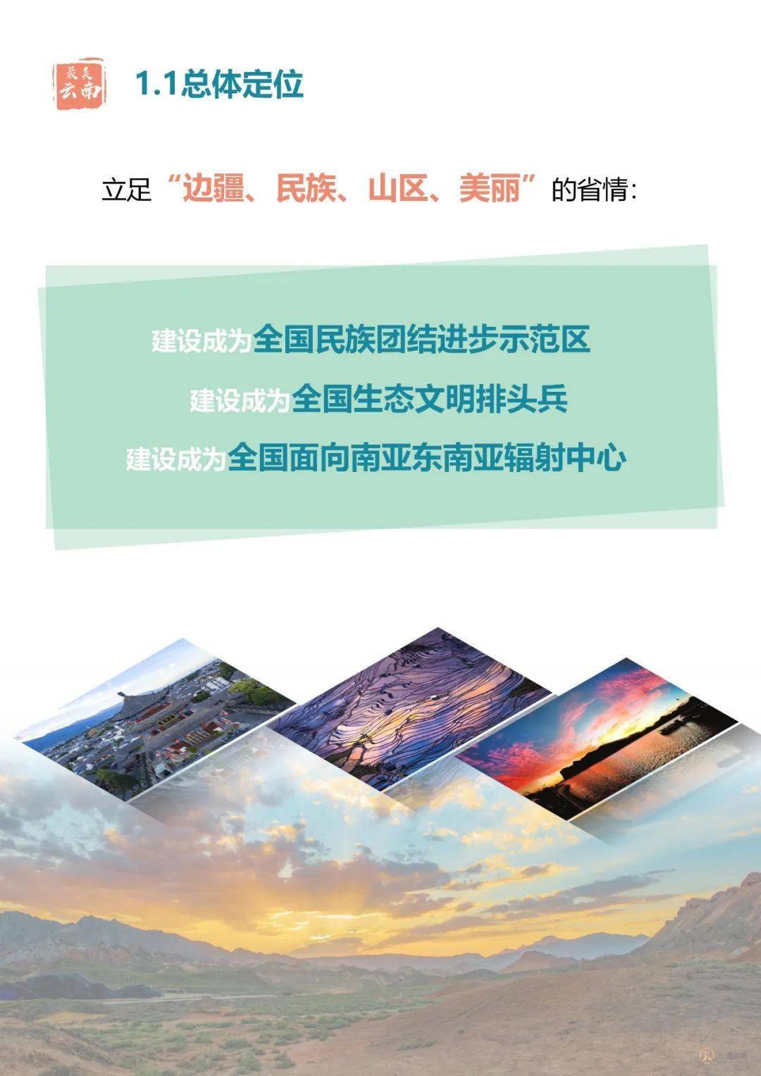 具體而言,云南省總體定位是:全國民族團結(jié)進步示范區(qū)、全國生態(tài)文明排頭兵、全國面向南亞東南亞輻射中心,規(guī)劃至2035年建設(shè)成為中國最美麗省份,成為人人向往的健康生活目的地。