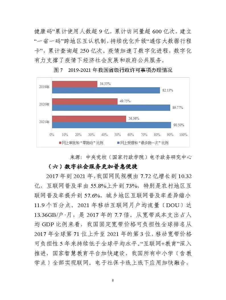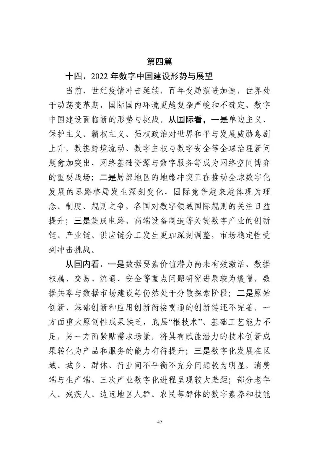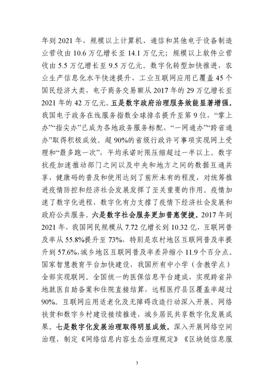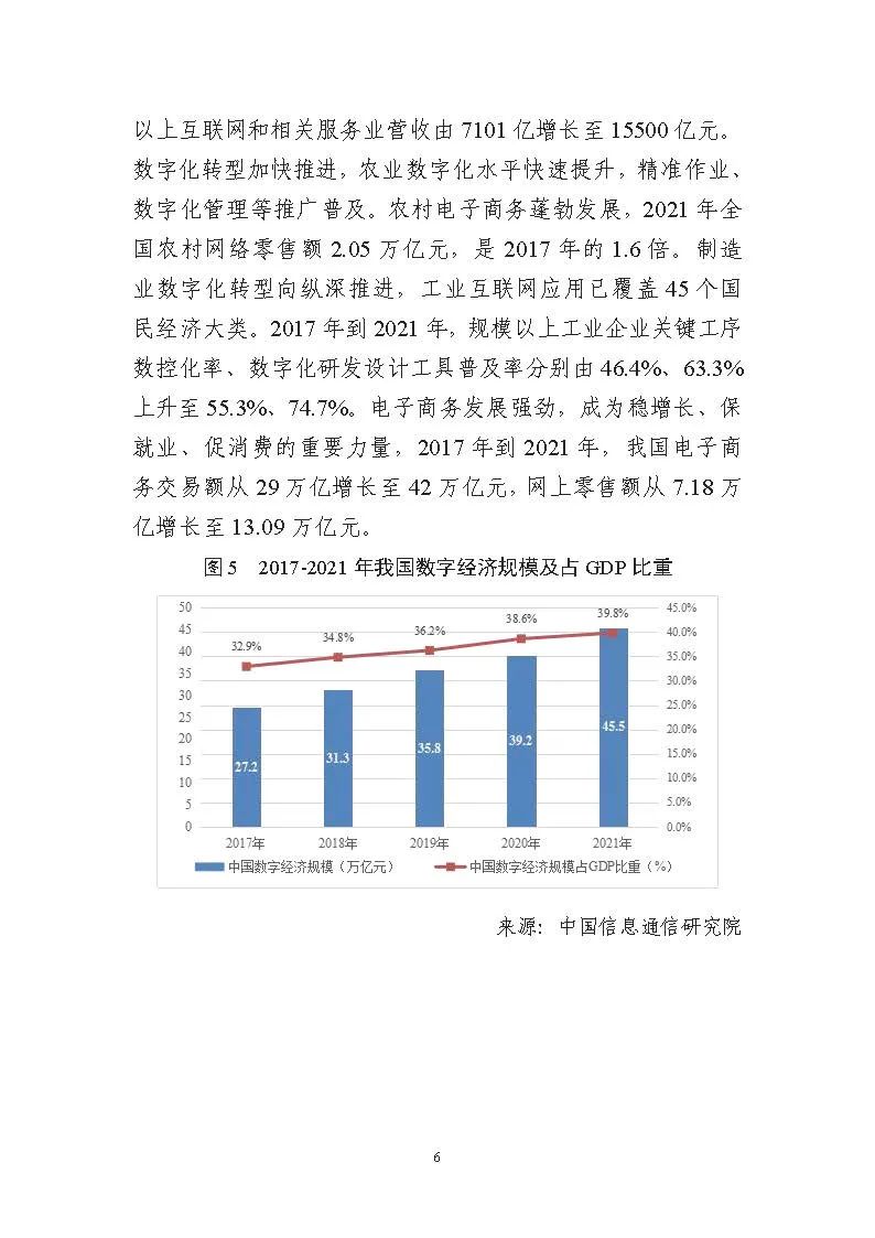 為貫徹落實(shí)黨中央、國務(wù)院關(guān)于建設(shè)數(shù)字中國的重要部署,深入實(shí)施《國家信息化發(fā)展戰(zhàn)略綱要》《“十四五”國家信息化規(guī)劃》等戰(zhàn)略規(guī)劃,國家互聯(lián)網(wǎng)信息辦公室會(huì)同有關(guān)方面跟蹤監(jiān)測(cè)各地區(qū)、各部門數(shù)字化發(fā)展情況,開展數(shù)字中國發(fā)展水平評(píng)估工作,編制完成《數(shù)字中國發(fā)展報(bào)告(2021年)》(以下簡(jiǎn)稱《報(bào)告》)?!秷?bào)告》總結(jié)了黨的十九大以來數(shù)字中國建設(shè)取得的顯著成就和2021年的重要進(jìn)展成效,評(píng)估了2021年各地區(qū)數(shù)字化發(fā)展水平,并對(duì)2022年數(shù)字中國建設(shè)進(jìn)行了展望?!秷?bào)告》全文如下: