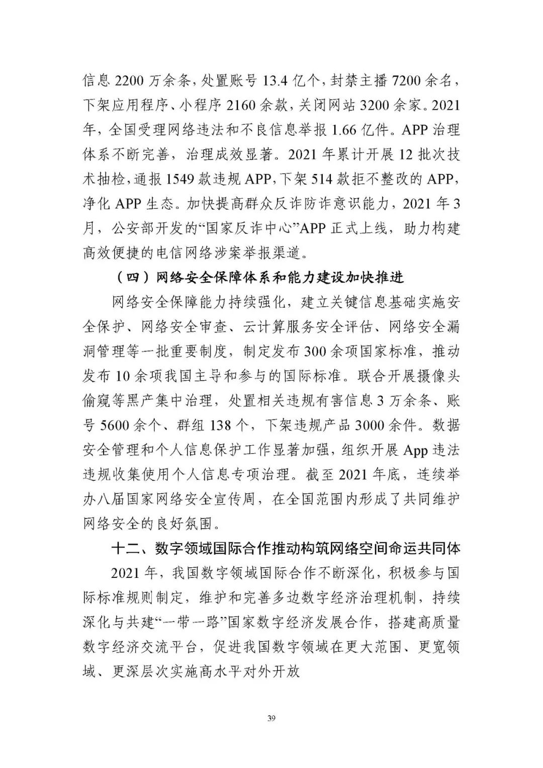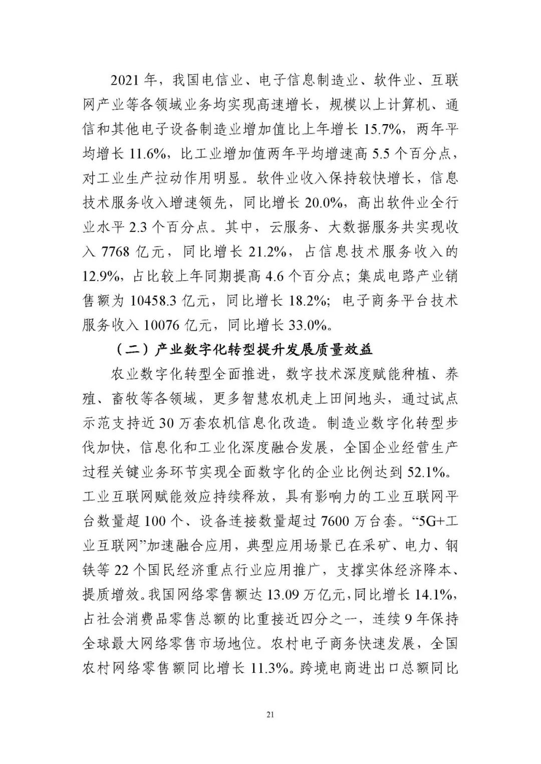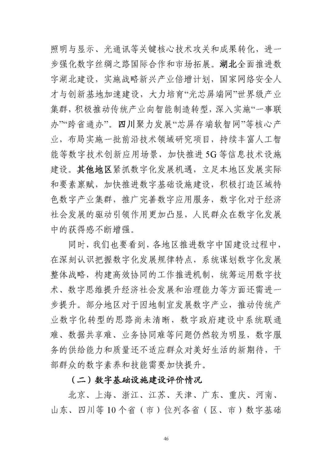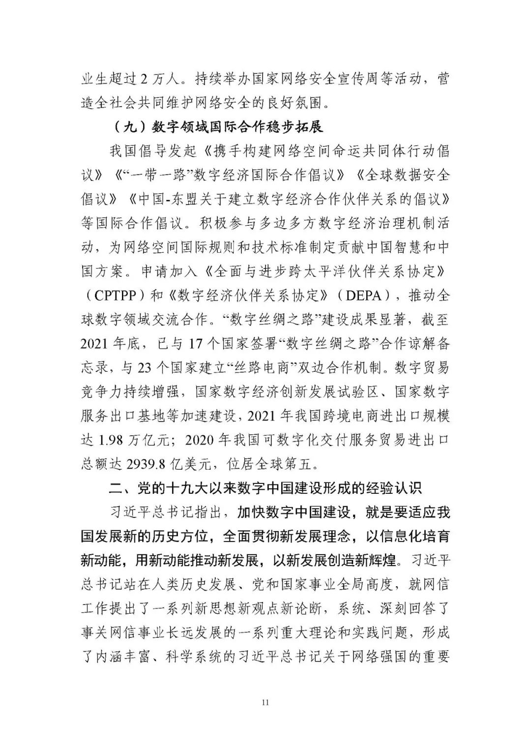 為貫徹落實(shí)黨中央、國務(wù)院關(guān)于建設(shè)數(shù)字中國的重要部署,深入實(shí)施《國家信息化發(fā)展戰(zhàn)略綱要》《“十四五”國家信息化規(guī)劃》等戰(zhàn)略規(guī)劃,國家互聯(lián)網(wǎng)信息辦公室會(huì)同有關(guān)方面跟蹤監(jiān)測(cè)各地區(qū)、各部門數(shù)字化發(fā)展情況,開展數(shù)字中國發(fā)展水平評(píng)估工作,編制完成《數(shù)字中國發(fā)展報(bào)告(2021年)》(以下簡(jiǎn)稱《報(bào)告》)?!秷?bào)告》總結(jié)了黨的十九大以來數(shù)字中國建設(shè)取得的顯著成就和2021年的重要進(jìn)展成效,評(píng)估了2021年各地區(qū)數(shù)字化發(fā)展水平,并對(duì)2022年數(shù)字中國建設(shè)進(jìn)行了展望?!秷?bào)告》全文如下: