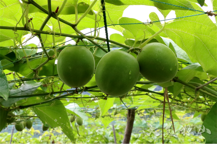 走進麻尾鎮(zhèn)南門村麻廣組種植基地,成片的棚架下繁星般掛滿了一個個翠綠的果子,在陽光的照耀下閃閃發(fā)光,羅漢果散發(fā)著誘人的香味,飄滿整個山野。