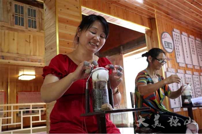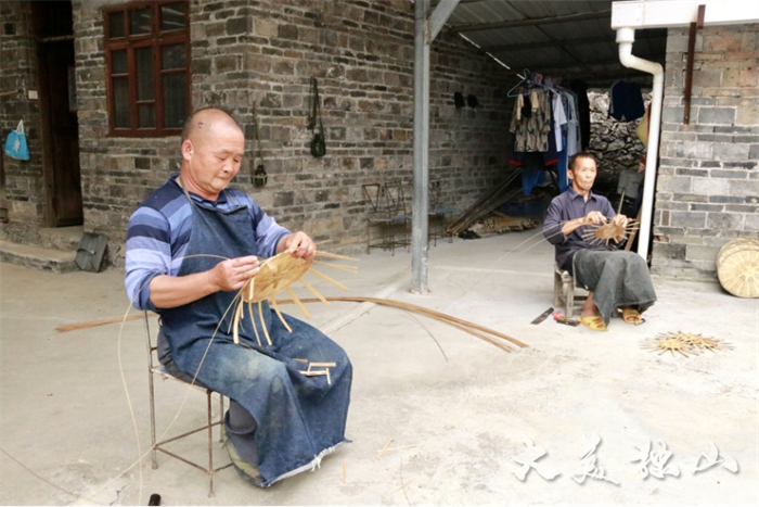 基長鎮(zhèn)陽地村下塘流組鄉(xiāng)村振興集成示范試點,群眾進行編織
