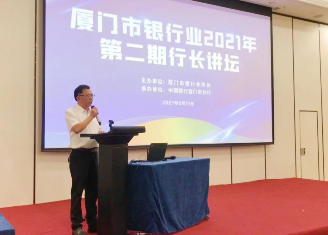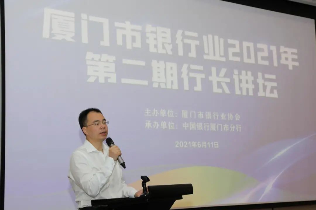 2021年6月11日,廈門市銀行業(yè)第二期行長講壇在兩岸區(qū)域性金融服務(wù)中心舉辦。廈門市銀行業(yè)協(xié)會49個會員單位的行長或總經(jīng)理參加了講壇,廈門銀保監(jiān)局一級巡視員張新潭及外資處負責(zé)人等應(yīng)邀出席。廈門市銀行業(yè)協(xié)會專職副會長黃碧楠主持講壇。