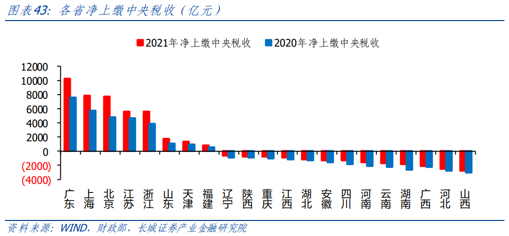 云南省對中央財政支持依賴程度較高。2019至2022年,中央轉移支付占云南省收支缺口比例逐年升高,由2019年81.52%上升至2022年93.36%,且始終高于全國平均占比;2020和2021,云南省的凈上繳稅收均居于全國下游位置,分別是2201.57億元和1747.36億元。