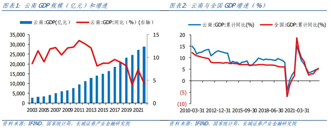 云南作為我國重要的邊疆省份和多民族聚居區(qū),與東南亞等多國鄰近,具有向西南開放的獨特優(yōu)勢;同時擁有豐富的礦產、水能、生物等自然資源以及民族文化和旅游資源,發(fā)展?jié)摿薮蟆?/span>但工業(yè)發(fā)展相對緩慢,城鎮(zhèn)化率較低,對中央財政支持依賴程度高,地方政府債務增長迅速,人均GDP和消費、出口等多項經濟指標排名相對靠后。