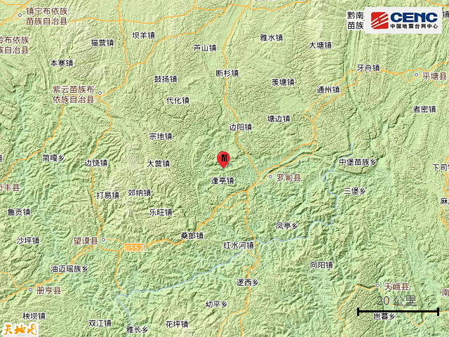 速報參數(shù):據(jù)中國地震臺網(wǎng)正式測定,6月21日1時18分在貴州黔南州羅甸縣發(fā)生3.0級地震,震源深度8公里,震中位于北緯25.46度,東經(jīng)106.57度。