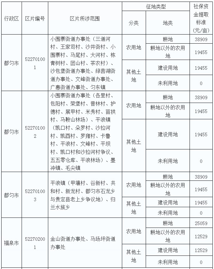 黔南州被征地農(nóng)民社會(huì)保障資金提取標(biāo)準(zhǔn)公布