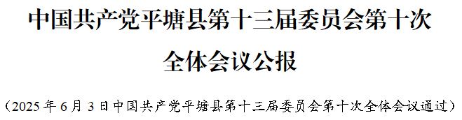 中國共產黨平塘縣第十三屆委員會第十次全體會議,于2025年6月3日在平塘縣城舉行??h委委員33人、候補委員6人出席會議。不是縣“兩委”委員的縣領導、縣紀委委員、不是縣“兩委”委員的鄉(xiāng)(鎮(zhèn))黨委主要負責同志、縣有關部門(單位)負責同志、部分基層黨代表列席會議。