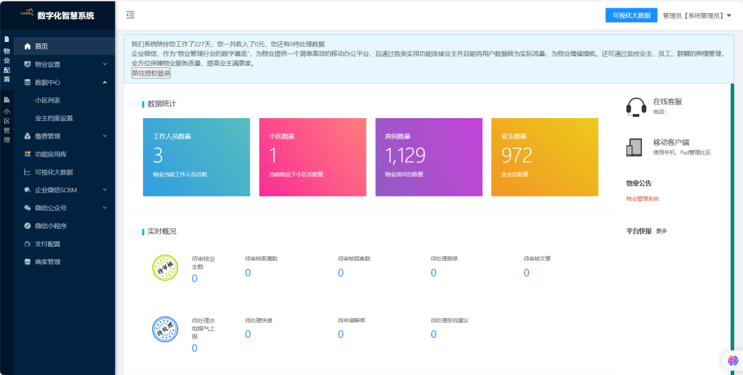 物管云是一款基于云計(jì)算和移動(dòng)互聯(lián)網(wǎng)的智慧社區(qū)解決方案軟件,實(shí)現(xiàn)物業(yè)管理的數(shù)字化、智能化。該系統(tǒng)涵蓋收費(fèi)、報(bào)修、公告等多項(xiàng)功能,提高管理效率,提升服務(wù)質(zhì)量,助力物業(yè)公司轉(zhuǎn)型升級(jí)。