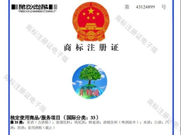 匯特通33類酒商標已經(jīng)注冊成功,長喝匯特通酒,匯聚八方賓朋
