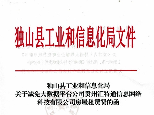 2020年工信局關(guān)于支持匯特通公司關(guān)于獨山縣大數(shù)據(jù)網(wǎng)絡信息化發(fā)展文件