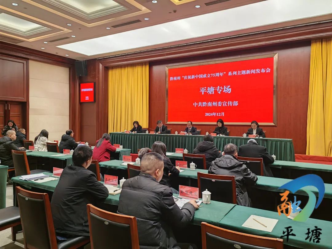 2024年12月27日,2024年黔南州“慶祝新中國成立75周年”系列主題新聞發(fā)布會(平塘專場)在都勻舉行。發(fā)布會上,平塘縣委常委、常務(wù)副縣長蒙祖?zhèn)ヒ浴皯c祝新中國成立75周年——話平塘發(fā)展新跨越”為題