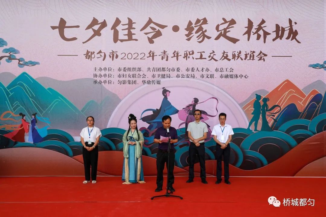 8月4日下午,由黔南州都勻市委組織部、團市委、市委人才辦、市總工會主辦,市婦女聯(lián)合會、市衛(wèi)健局、市公安局、市文聯(lián)、市融媒體中心協(xié)辦的“七夕佳令·緣定橋城”青年職工交友聯(lián)誼活動在都勻市秦漢影視城舉行。市
