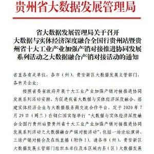 貴州省大數(shù)據(jù)發(fā)展管理局關(guān)于在銅仁市國賓館舉行“大數(shù)據(jù)與實體經(jīng)濟深度融合全國行貴州站暨貴州省十大工業(yè)產(chǎn)業(yè)加強產(chǎn)銷對接推進協(xié)同發(fā)展系列活動”的通知