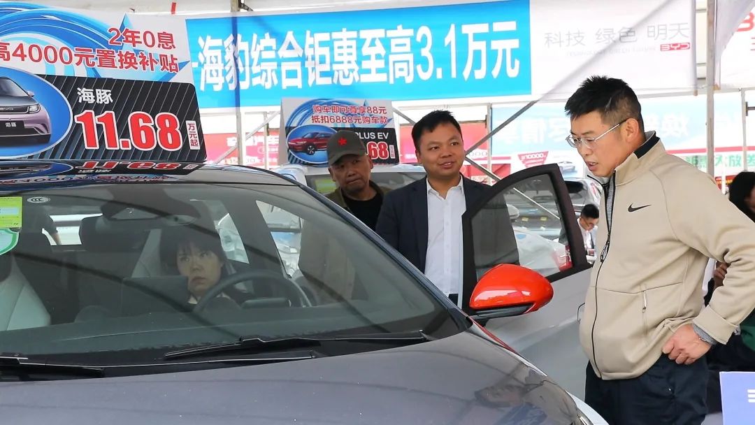 “車款很多,各個(gè)品牌的都有,看中了一輛新能源車,繼續(xù)跟商家談?wù)劊茨懿荒茉賰?yōu)惠點(diǎn),如果可以的話就把車定了?!笔忻袼伪净㈤_(kāi)心地說(shuō)。