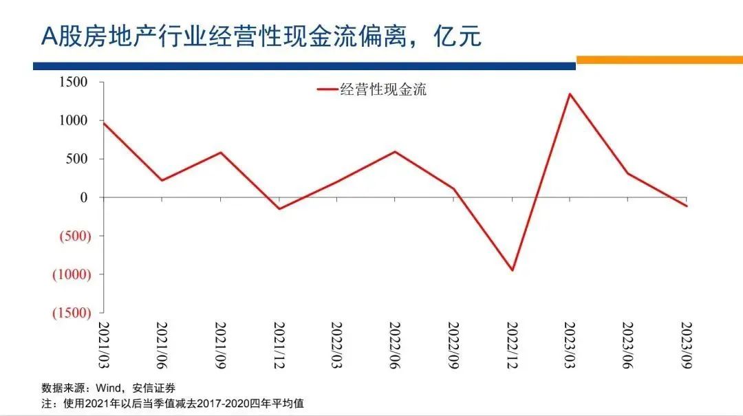 這中間當(dāng)然有短暫的例外,比如說(shuō)2022年底可能跟全國(guó)性的疫情管控放開(kāi)等等有關(guān)系的,但是2023年初很快它就恢復(fù)了,總體上房地產(chǎn)上市公司的經(jīng)營(yíng)性現(xiàn)金流是正常的,甚至是在改善。