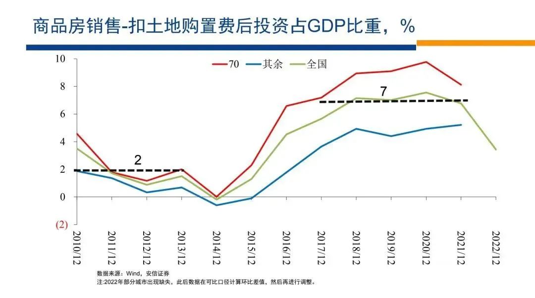 所以,從這些角度來(lái)看,考慮到中國(guó)仍然有一定的繼續(xù)推高城市化的空間,考慮到中國(guó)的城市化過(guò)程,仍然沒(méi)有結(jié)束和飽和,考慮到中國(guó)的人均收入水平,仍然有一定的提升空間,我們?cè)谝欢ǔ潭壬峡梢哉J(rèn)為,我們?cè)谶@些比較之中,所得到的7%的水平,應(yīng)該是未來(lái)長(zhǎng)期房地產(chǎn)投資占比中樞的下端。